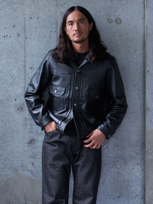 PREMIUM BLACK TYPEⅡ TRUCKER LEATHER JACKET