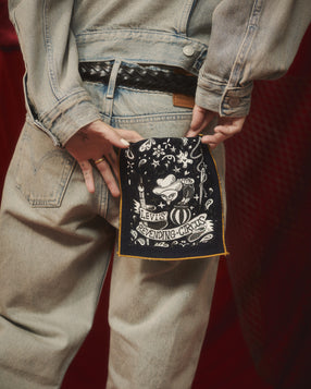 気鋭のファッションカスタム集団、REVENDING CIRCUS(リベンディング・サーカス)がイベントのために制作したデニムアクセサリーが登場します。オリジナルのグラフィックを、デニムの切れ端にシルクスクリーンしたバンダナや1点ものまで、デニムルックにぴったりなアクセサリーが手に入るチャンスです。
