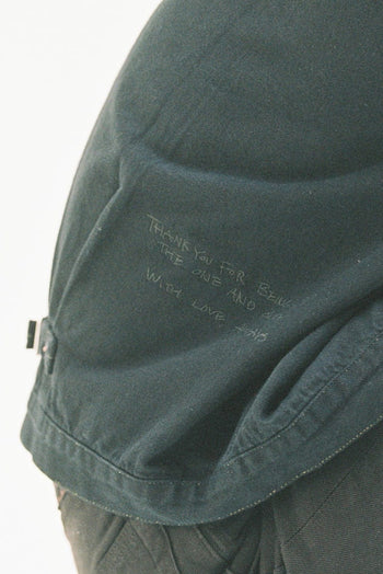 Levi’s®のブラックデニムのセットアップに、Shinzoneからの想いをそっと刺繍しました。