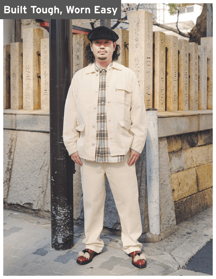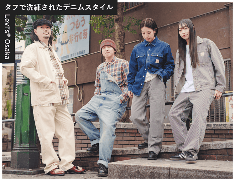 ワークウェアのDNAを受け継ぐLevi’s®のWORKWEARコレクションを、大阪店ならではのエネルギッシュなムードで着こなす。耐久性と機能美を兼ね備えたアイテムで、カジュアルながらも武骨なスタイリングを提案。デニム本来の魅力を再発見しよう。