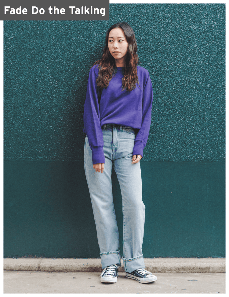 丸みのあるリブや風合いが魅力のBAY MEADOWS スウェットシャツに美しいハイウエスト&ストレートラインの701を合わせた洗練されたレトロルック。