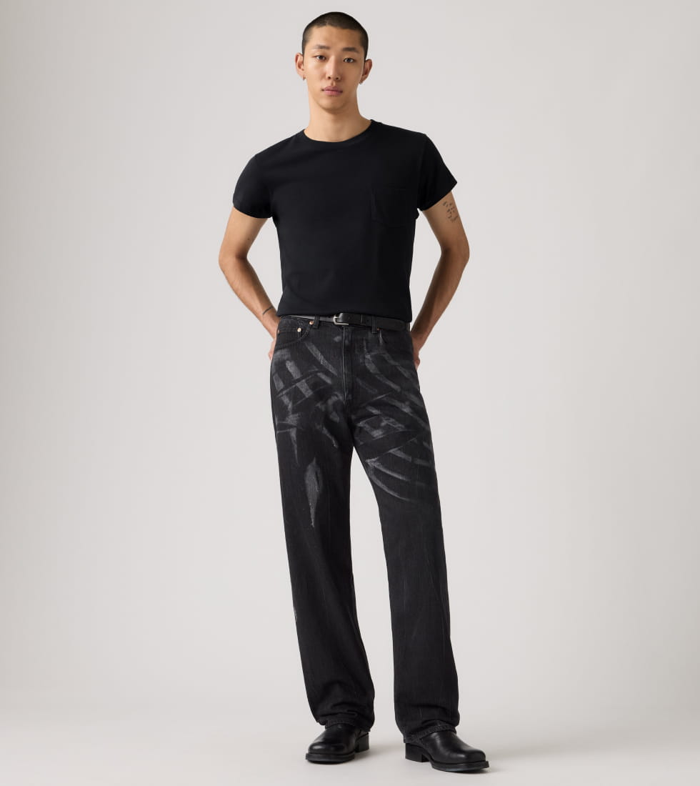 リーバイス®はこの偶然を芸術へと昇華させたこの驚くべき事例を保存するため、プリシュランク加工デニムを使用した554ジーンズとして復刻しました。