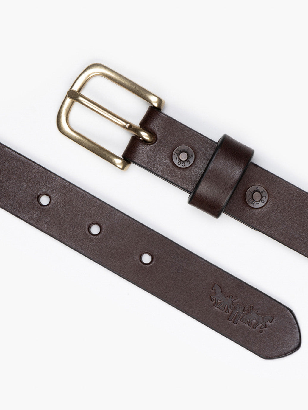 Levi's®の定番アイテムの一つであるレザーベルト。どんなボトムスにも合わせやすく、経年変化も楽しめるアイテムです。