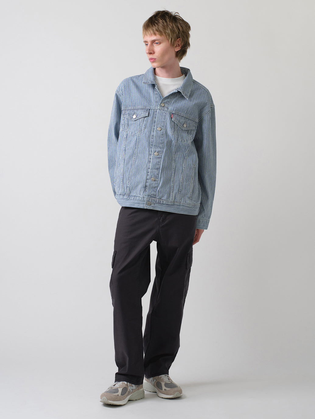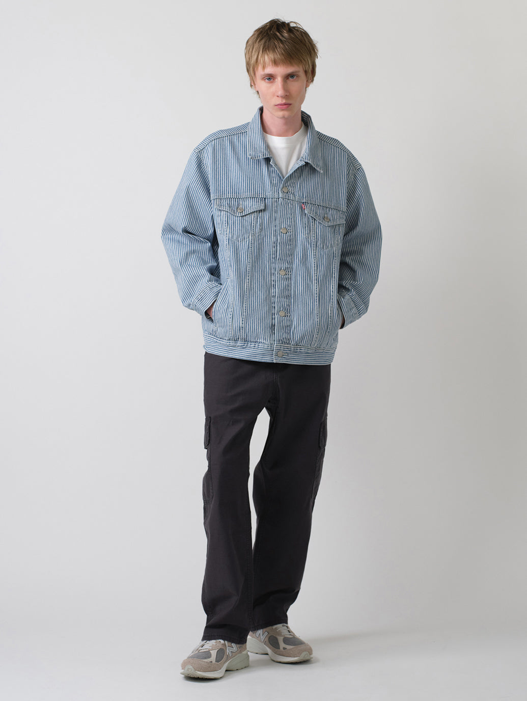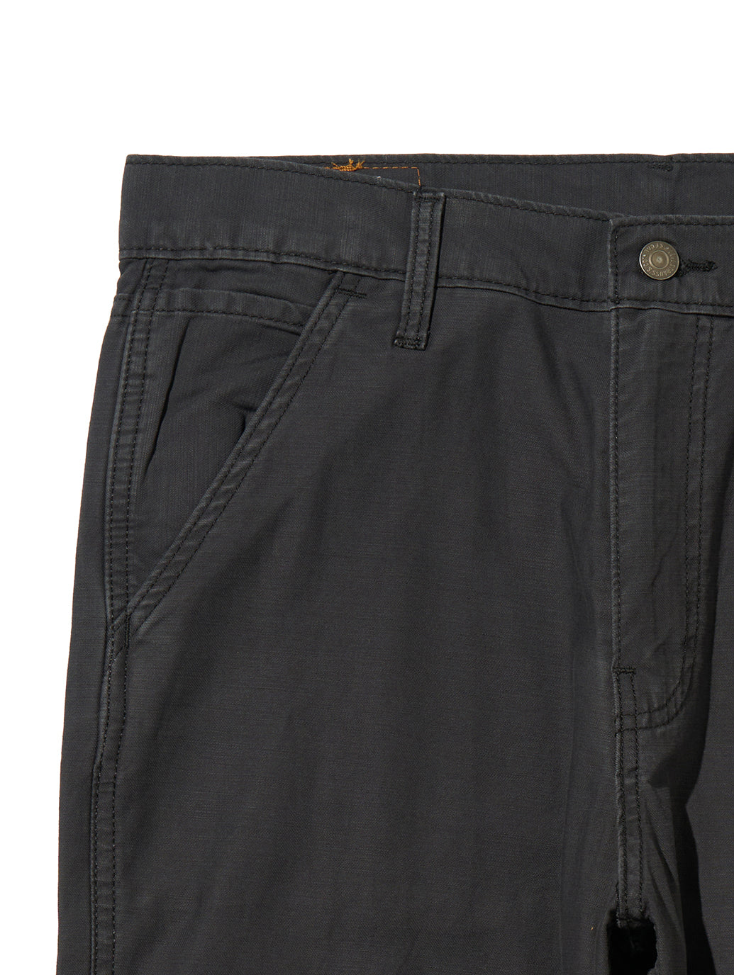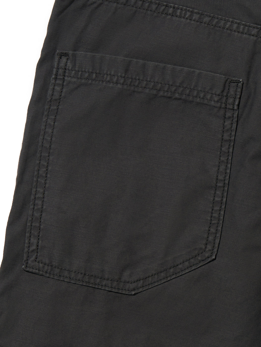 近年の90'sのリバイバルとしてその名の通りルーズでゆったりとしたストレートシルエットにワークテイストを落とし込んだパンツです。耐久性のある綿100%のブラックユーズドカラーの生地、通常の5ポケットに加え2つのカーゴポケットが配されているのが特徴です。ファッションアイテムとしてのみならず作業着としても活躍する一本です。