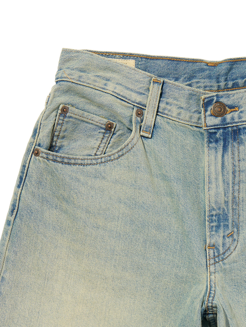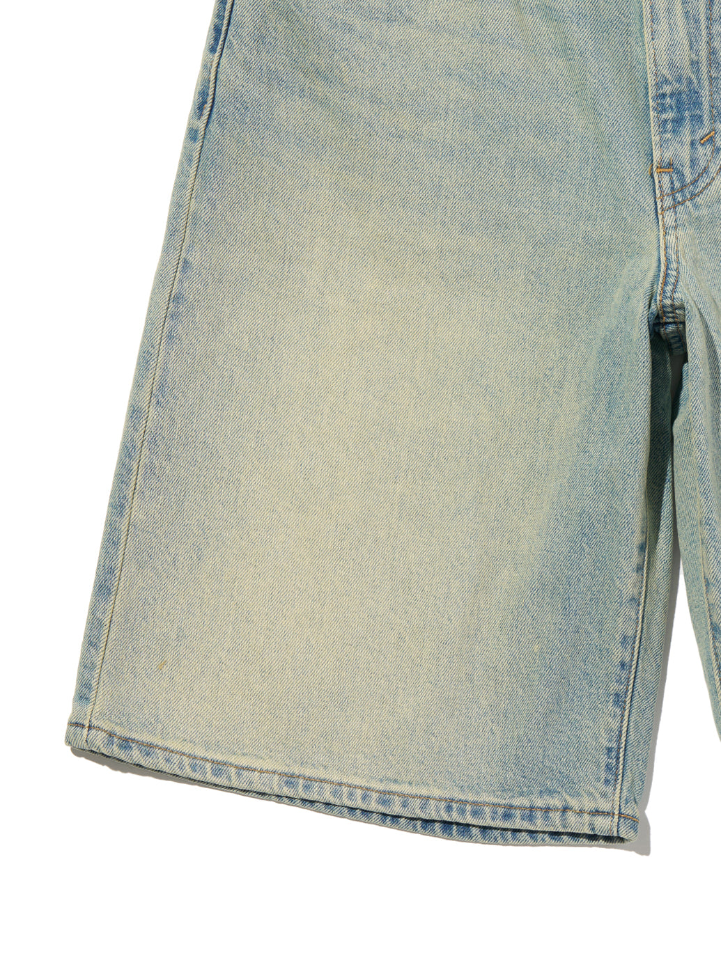 流行りのバギーハーフパンツ。ヴィンテージ加工されたようなデザイン。綿100%でしっかりとした生地感ながらもバギーフィットで、太ももにゆとりをもたせているので動きやすくなっています。