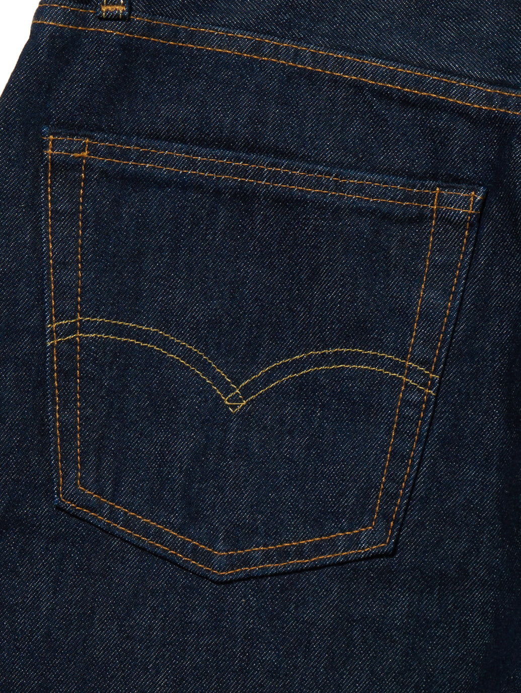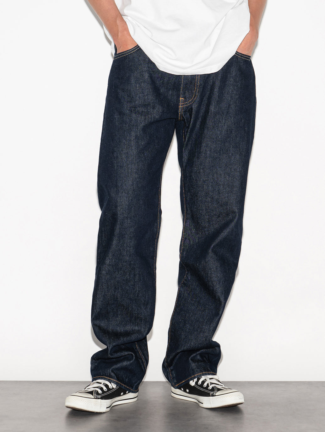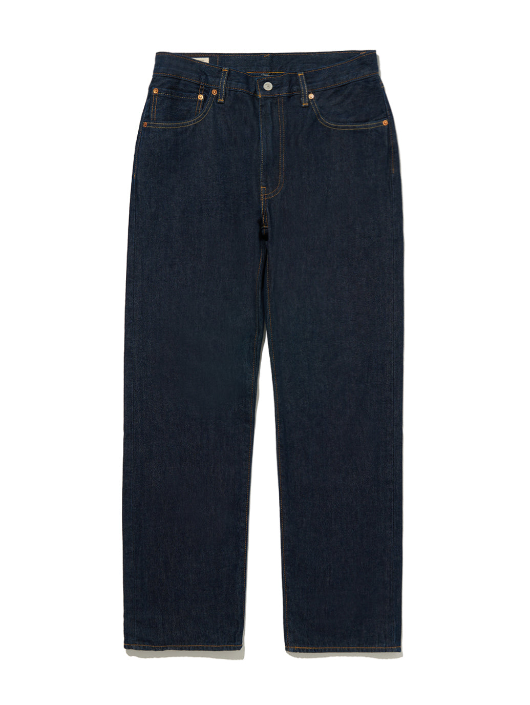 リラックス感のあるゆったりとしたストレートシルエットのパンツ。耐久性に優れた綿100%の生地、定番のリンスカラーが特徴です。幅広いスタイリングに合わせやすいのは勿論、経年変化を楽しみながら穿ける一本です。
