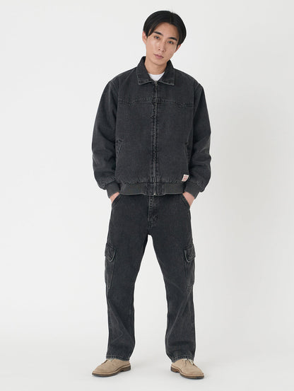 近年の90'sのリバイバルとしてその名の通りルーズでゆったりとしたストレートシルエットにワークテイストを落とし込んだパンツです。耐久性のある綿100%のブラックユーズドカラーの生地、通常の5ポケットに加え2つのカーゴポケットが配されているのが特徴です。ファッションアイテムとしてのみならず作業着としても活躍する一本です。