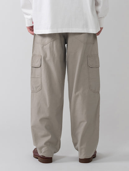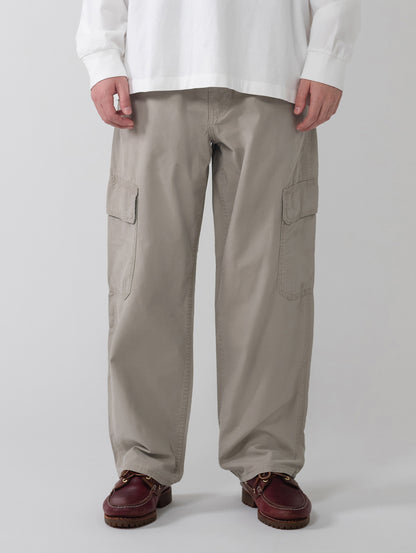 近年の90'sのリバイバルとしてその名の通りルーズでゆったりとしたストレートシルエットにワークテイストを落とし込んだパンツです。耐久性のある綿100%のライトベージューカラーの生地、通常の5ポケットに加え2つのカーゴポケットが配されているのが特徴です。ファッションアイテムとしてのみならず作業着としても活躍する一本です。