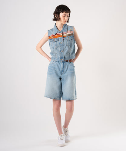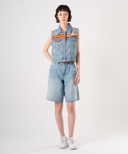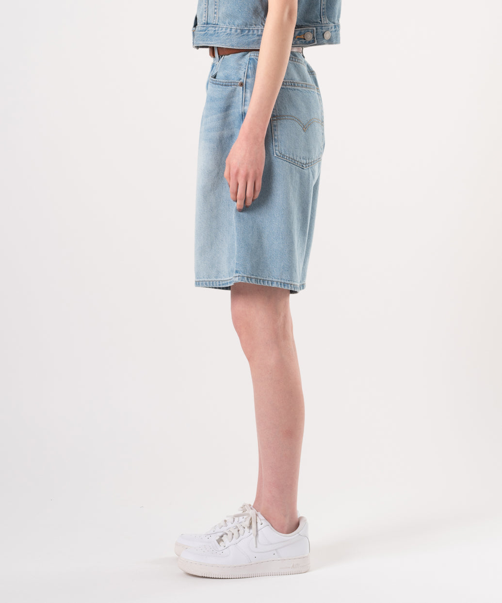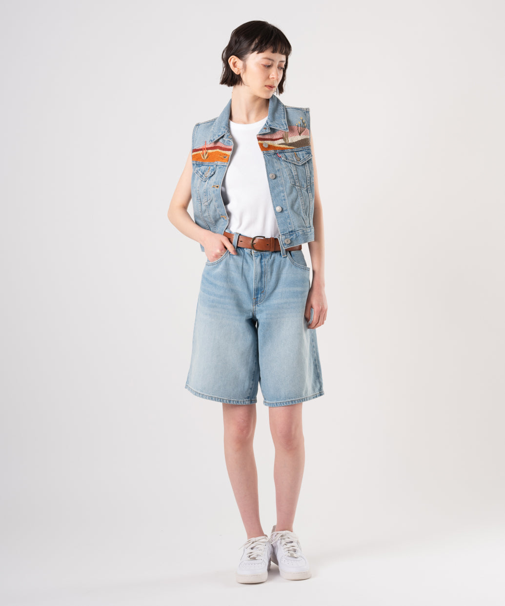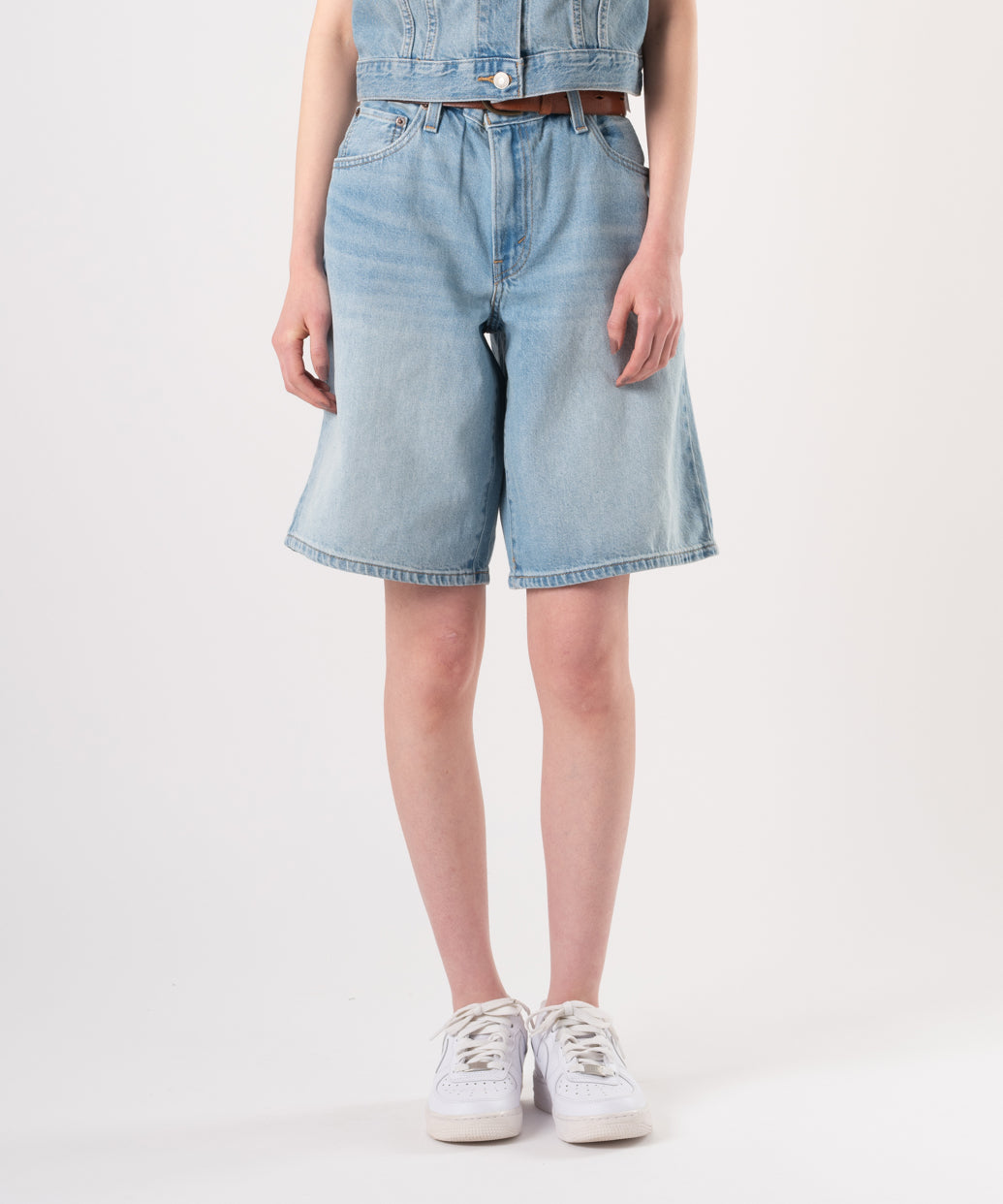 流行りのバギーハーフパンツ。ライトカラーのデザイン。綿100%でしっかりとした生地感ながらもバギーフィットで、太ももにゆとりをもたせているので動きやすくなっています。