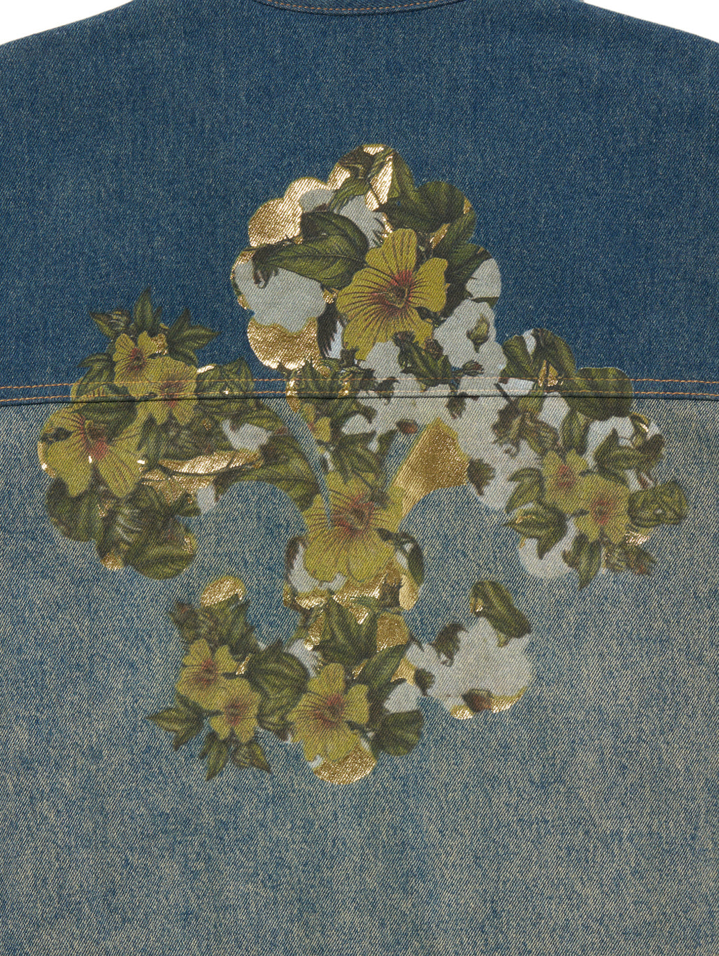 ニューオーリンズの伝統にインスピレーションを得たこのトラックジャケットは、ダークウォッシュのカラーブロッキングを施したミッドインディゴウォッシュで、この街のフランスのルーツと深く結びついたシンボルであるコットンのアヤメのプリントが特徴です。