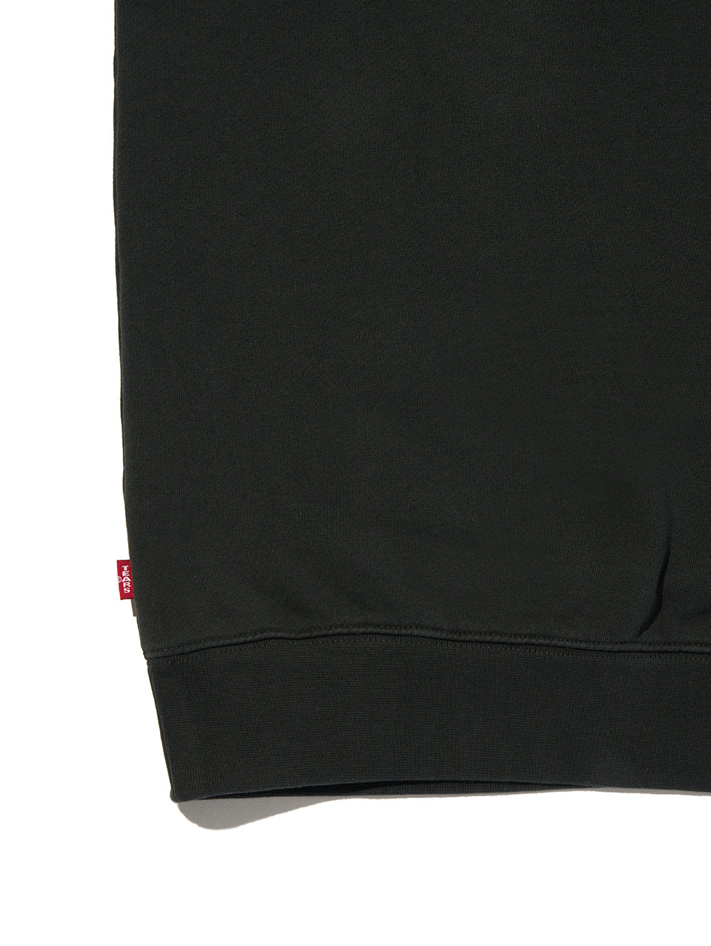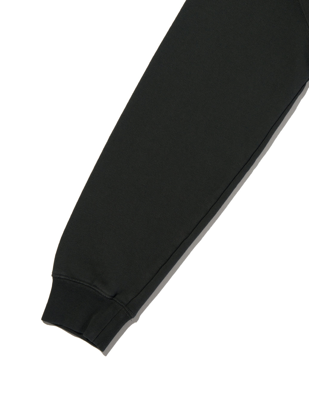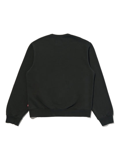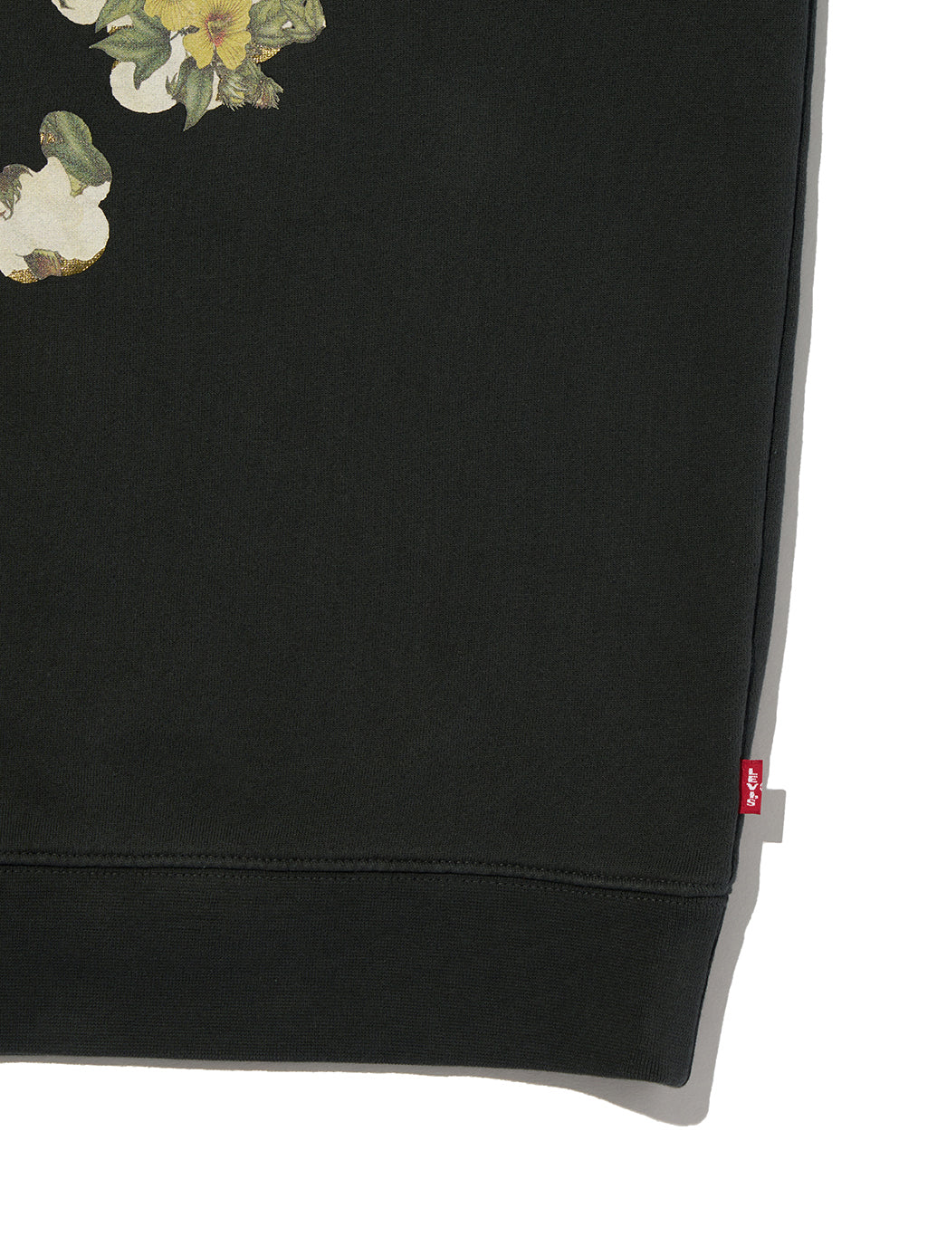 このクルーネックスウェットシャツは、ウォッシュ加工を施したブラックのベースと、ユニークなコットン製のフルールドリスのアートワークが特徴です。