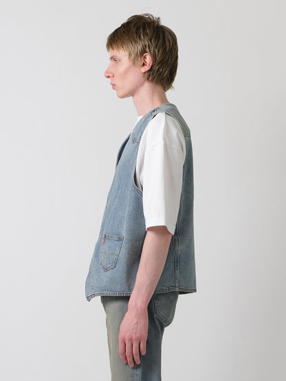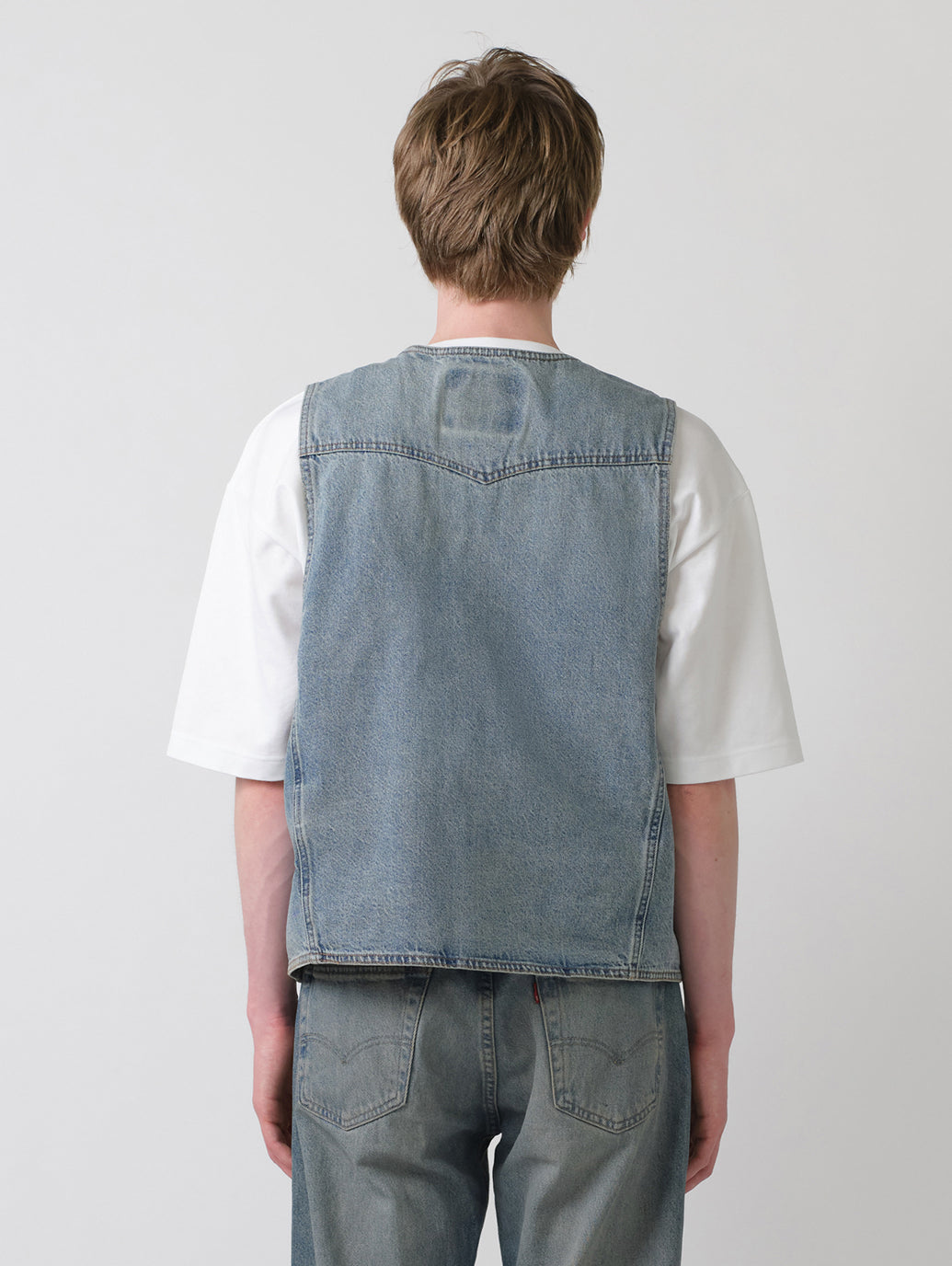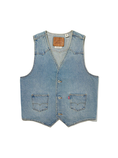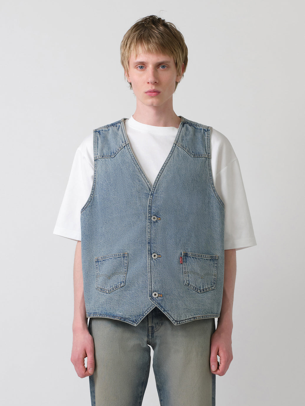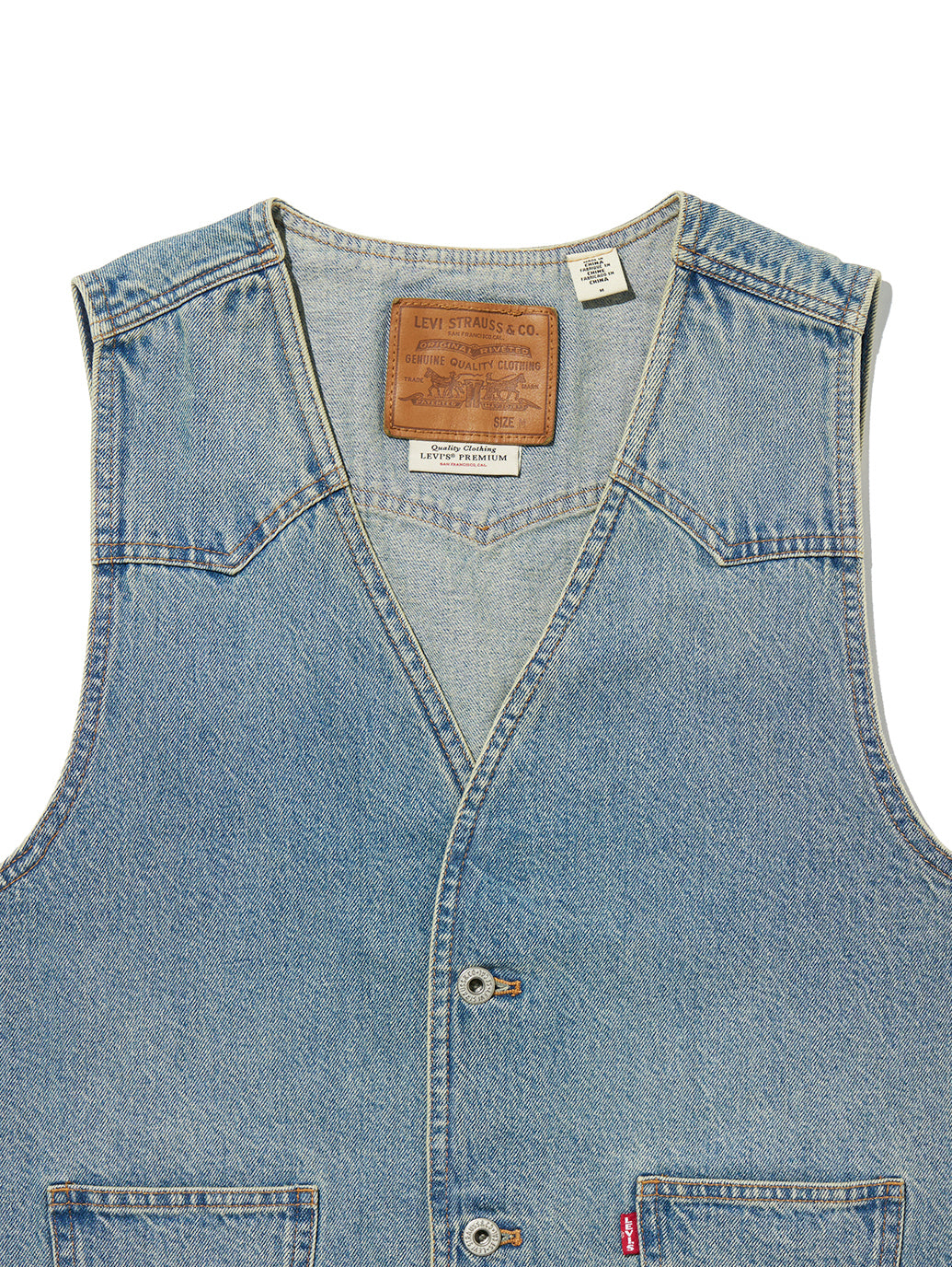 クラシックで着こなしの幅が広い、Levi'sのデニムベスト。フロントボタンアップのスタンダードフィットで、クラシックなノンストレッチデニム製です。ユーズド感のあるライトカラーで、ワークテイストにもハマる一着です。