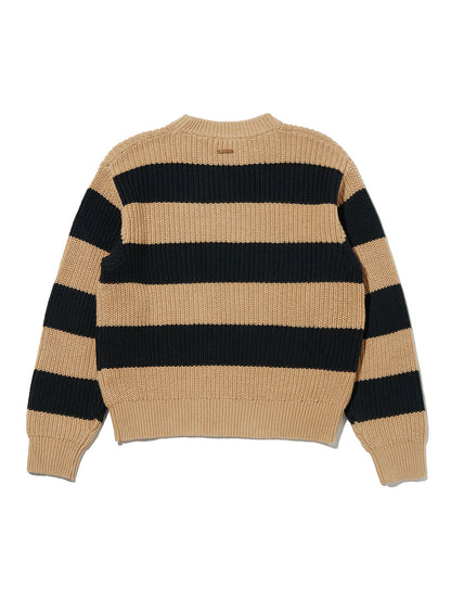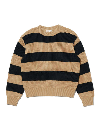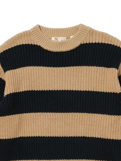 クルーネックのリラックスフィットで、縁がリブ編みのストライプデザインで着心地の良いセーターが登場しました。どんなジーンズとも相性ピッタリの一枚です。
