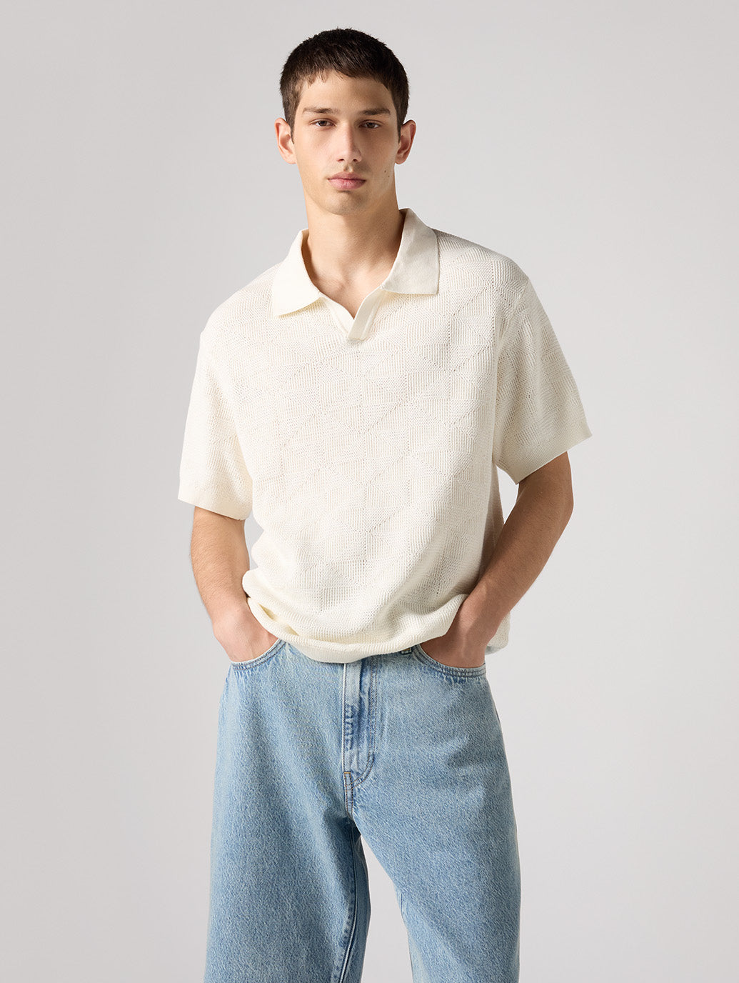 暖かい時期に大活躍のホワイトカラーポロシャツ。綿100%でしっかりとした生地。ジーンズやチノパンツに合わせていただきたい一枚です。