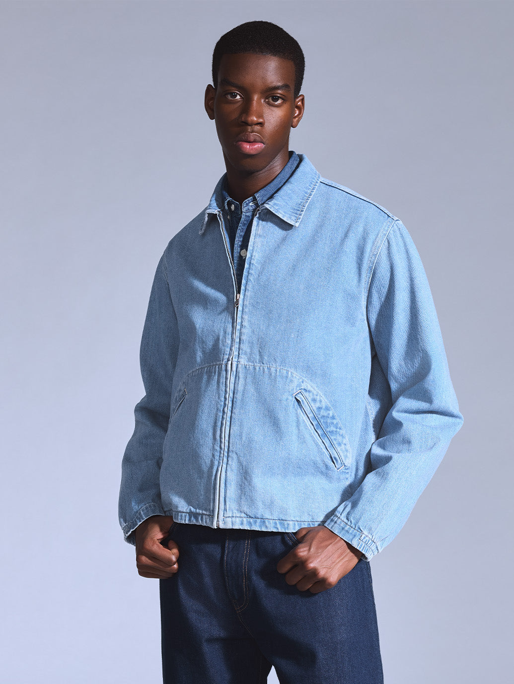 ボックスシルエットでわずかにクロップド丈で絶妙なバランスのスカウトジャケット。ムラの無い淡いライトカラーのボディにサイドポケットを配したシンプルなデザインです。裾、袖部分にも金具を使用せずシンプルかる洗練さを追求した一着です。