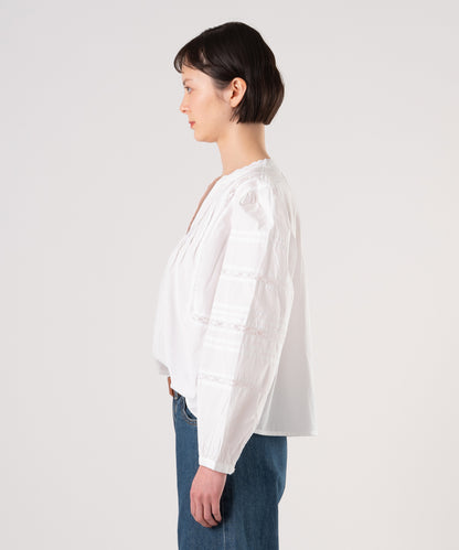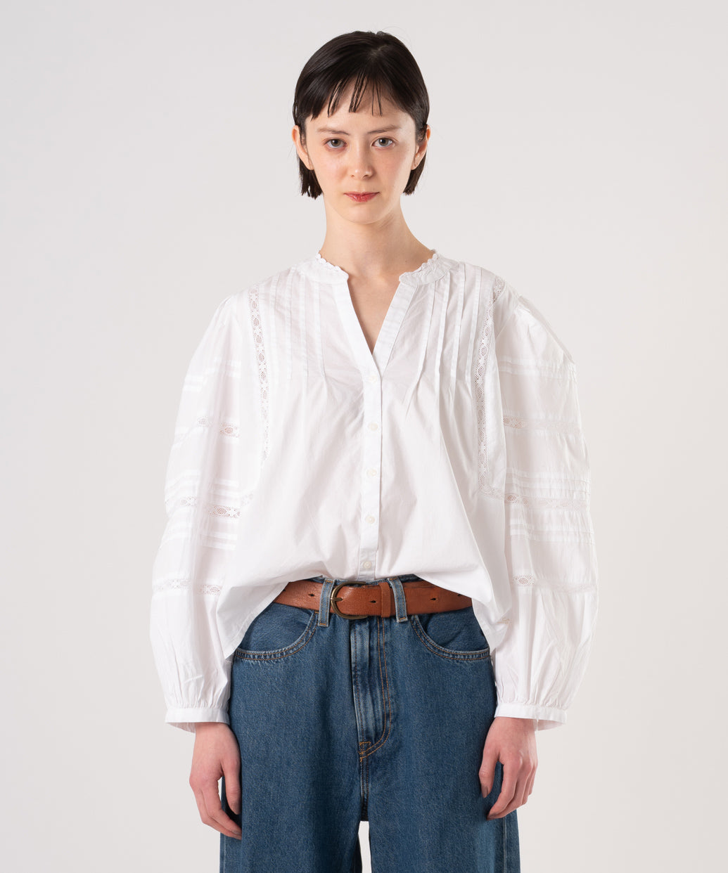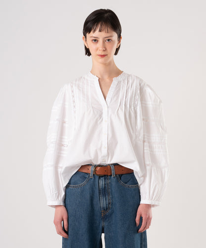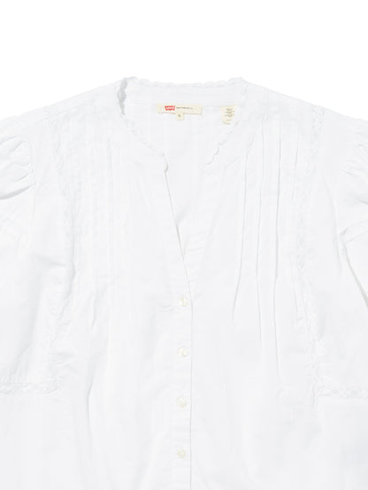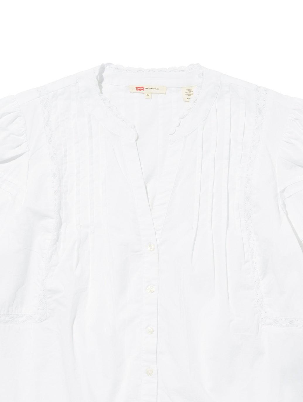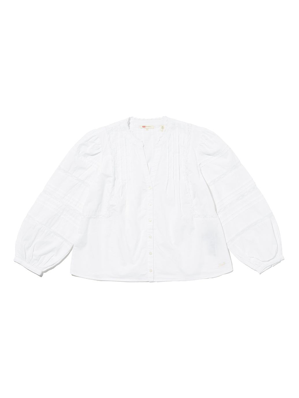 ソフトでさりげないLevi'sのMandy長袖ブラウスはフロントボタンアップにレースをあしらい、すこしだけふんわりしたフィットです。女性らしいシルエットでスカートにもジーンズにも相性ピッタリの春らしい一着です。
