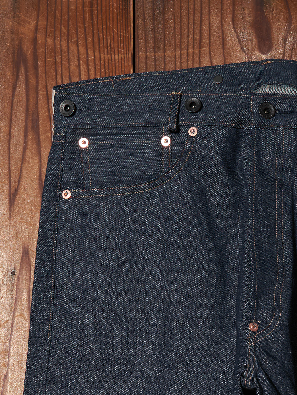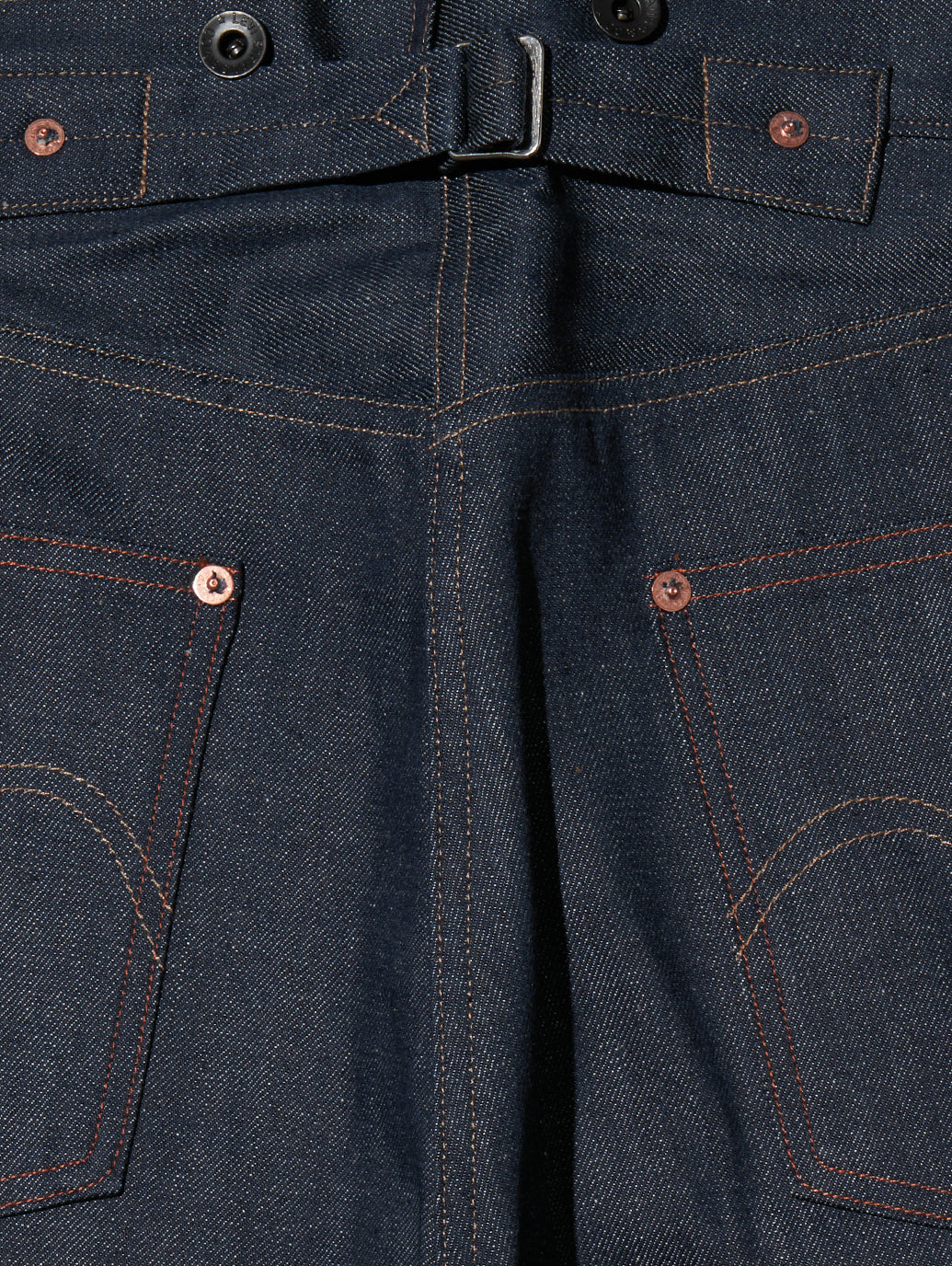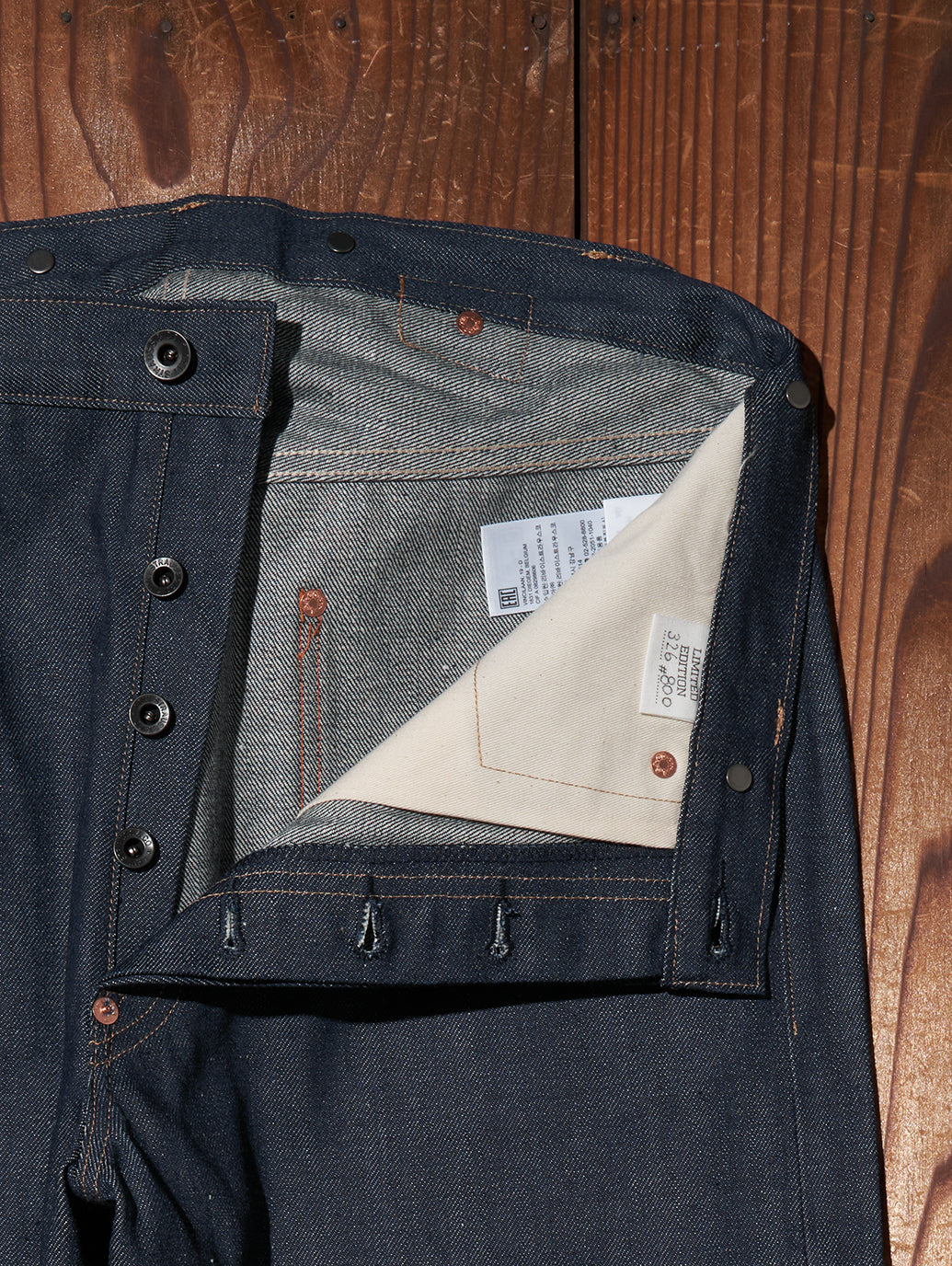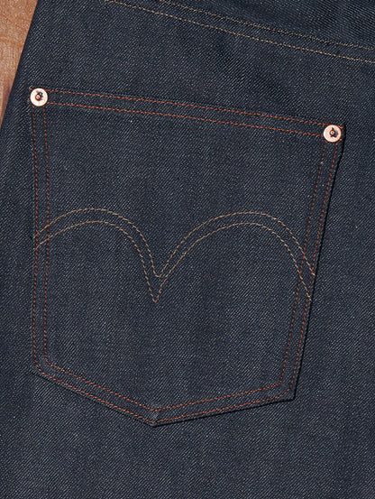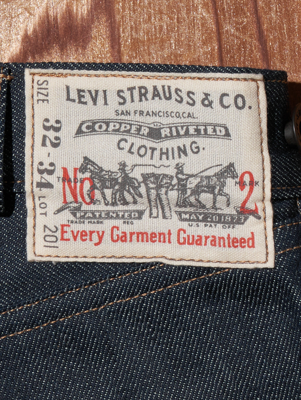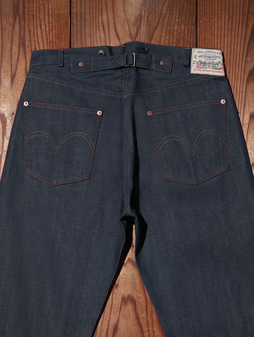 LEVI'S® VINTAGE CLOTHING LIMITED LOT 201 ジーンズは、ブラックのブランドドーナツボタン、シンチバック、むき出しの銅製リベットなど、この時代の特徴であるリラックスしたフィットを忠実に再現しています。日本製のShrink-To-Fit™(シュリンク トゥ フィット™)セルビッチデニムを使用し、クラシックな赤耳ではなくブルーのラインが特徴的です。