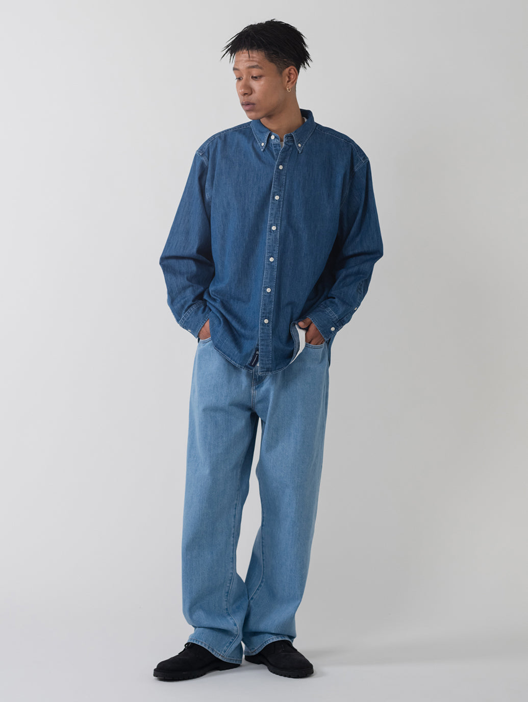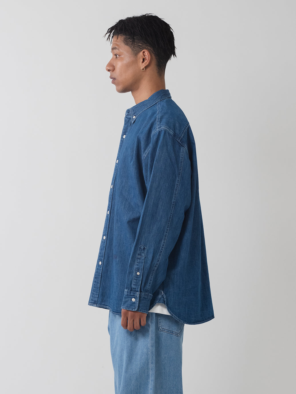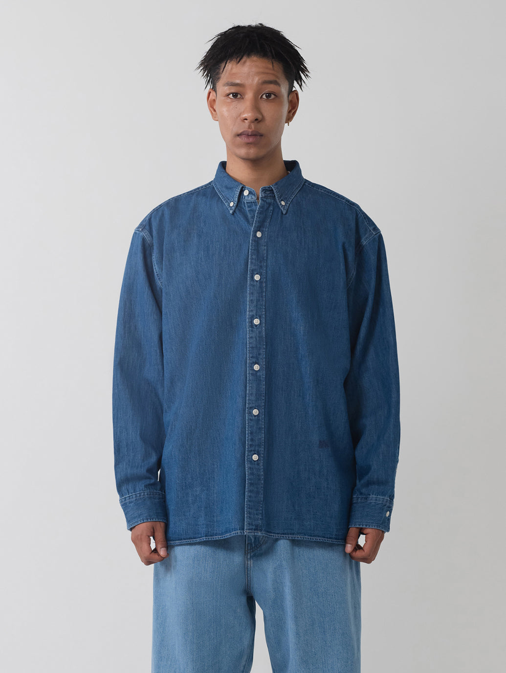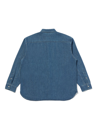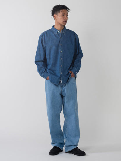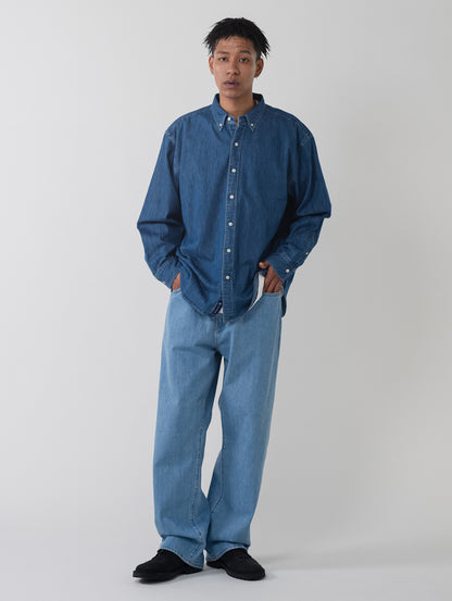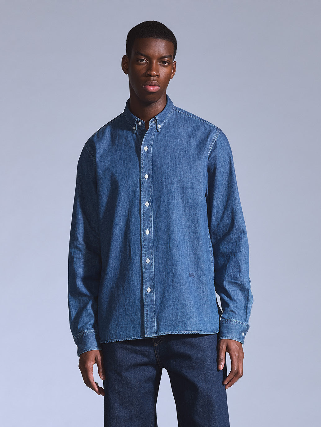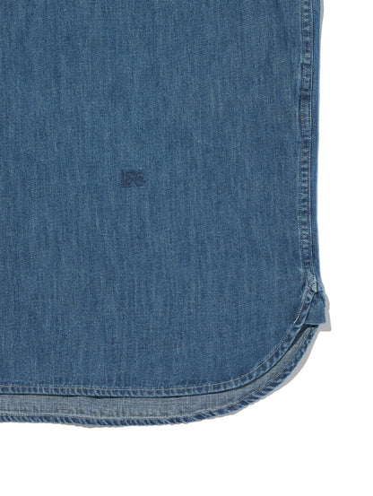 柔らかなデニム生地を使用したボタンダウンシャツ。リラックスフィットのボディの左の裾部分にさり気なく同色の当コレクションの刺繍ロゴをあしらったデザインです。シンプルでありながら上品で洗練された印象を持つ一着です。