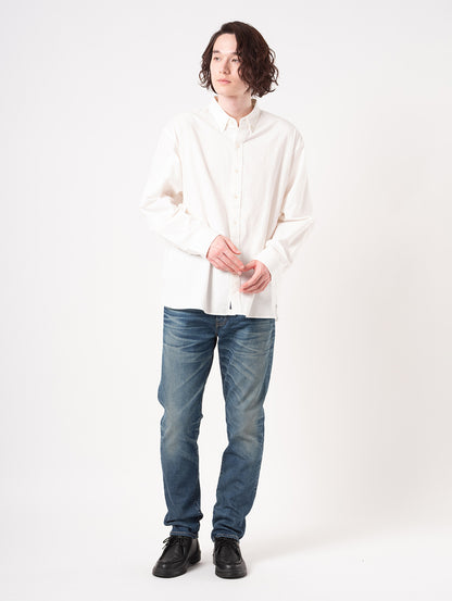 柔らかなコットン生地を使用したボタンダウンシャツ。リラックスフィットのボディの左の裾部分にさり気なく同色の当コレクションの刺繍ロゴをあしらったデザインです。シンプルでありながら上品で洗練された印象を持つ一着です。