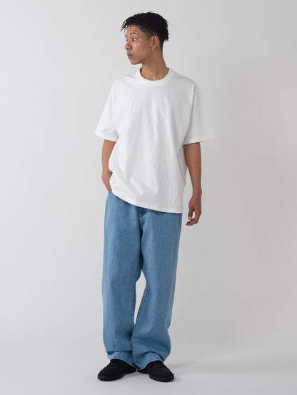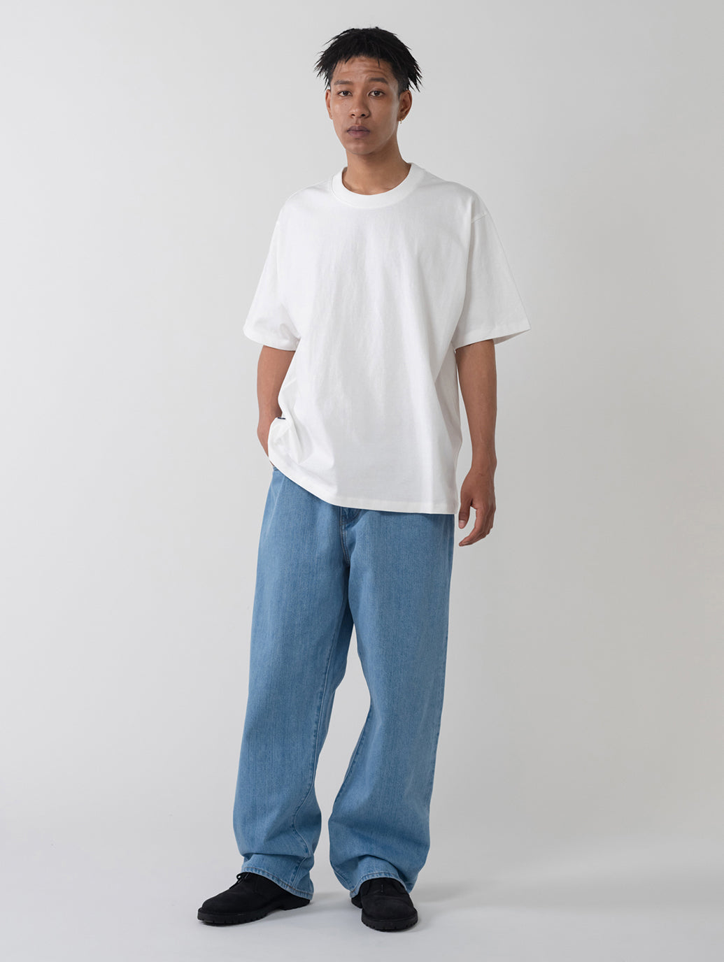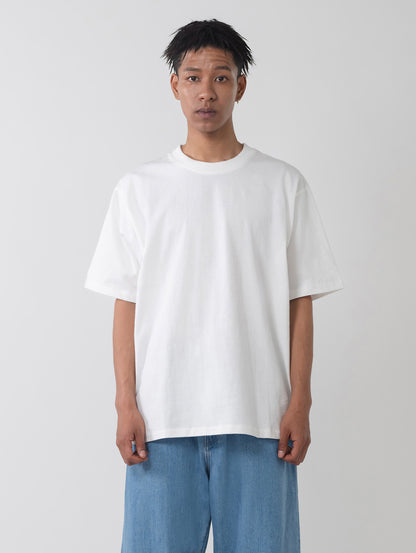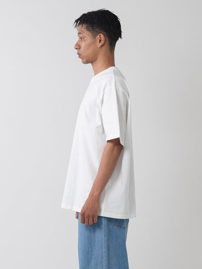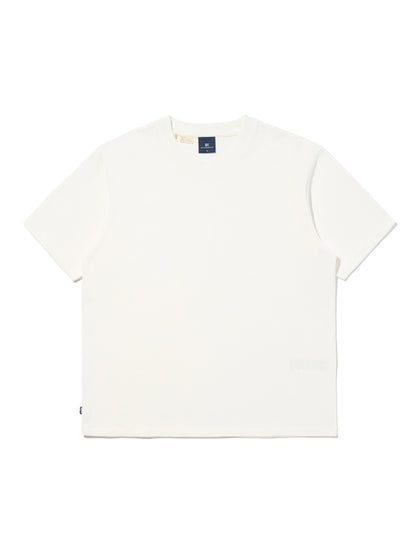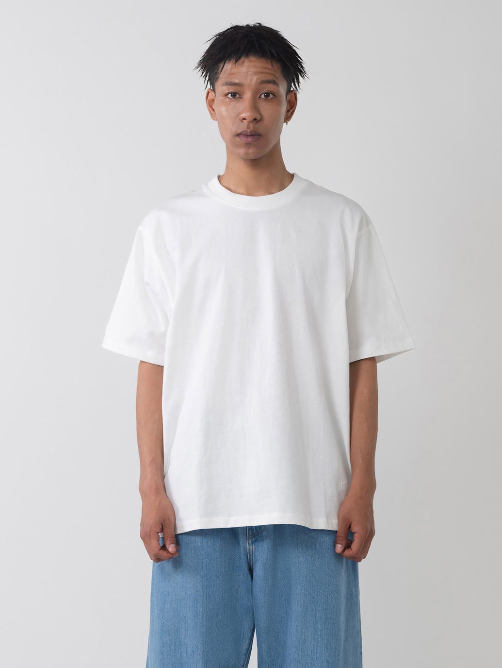 身幅のゆったりとしたリラックスフィットの無地Tシャツ。ボディの左の裾部分にさり気なく同色の当コレクションの刺繍ロゴをあしらったデザインです。シンプルでありながら上品で洗練された印象を持つ一着です。