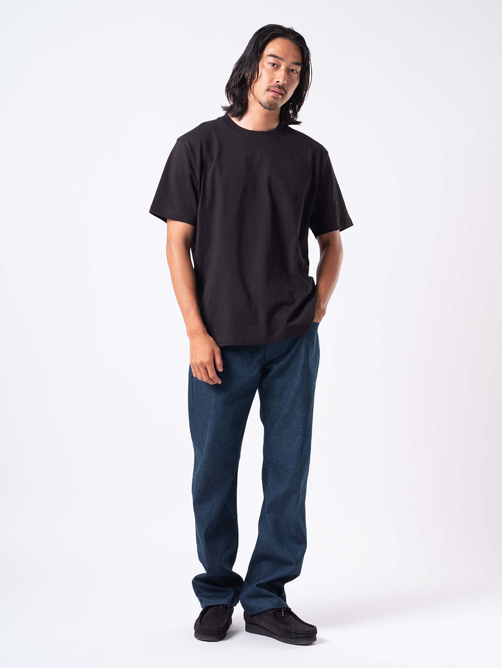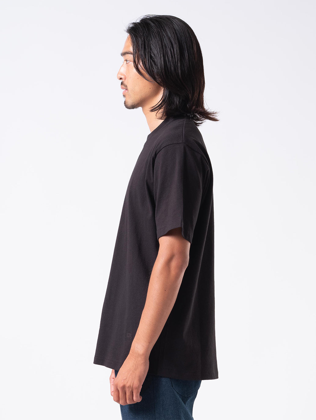 身幅のゆったりとしたリラックスフィットの無地Tシャツ。ボディの左の裾部分にさり気なく同色の当コレクションの刺繍ロゴをあしらったデザインです。シンプルでありながら上品で洗練された印象を持つ一着です。