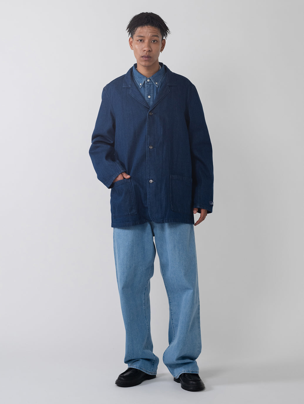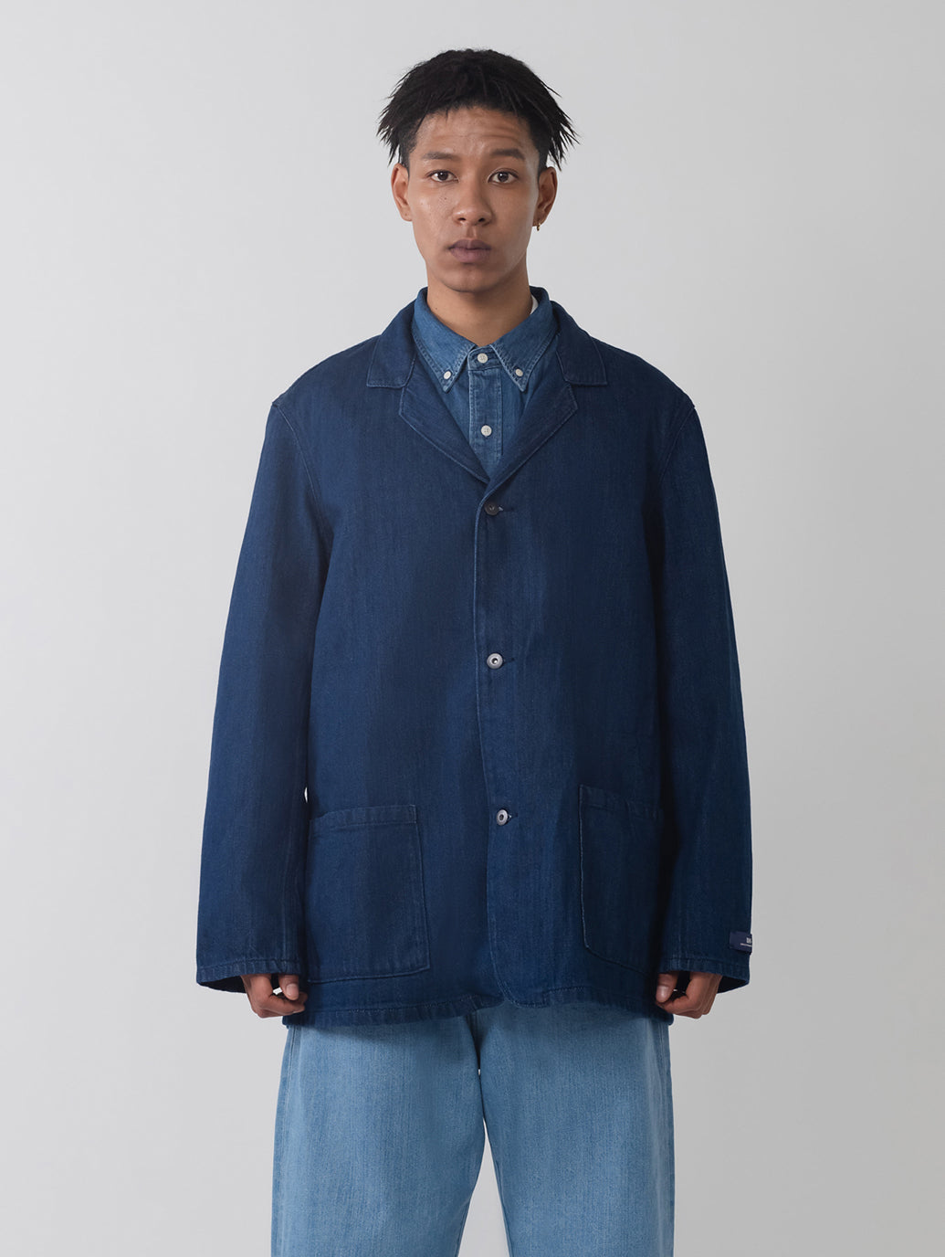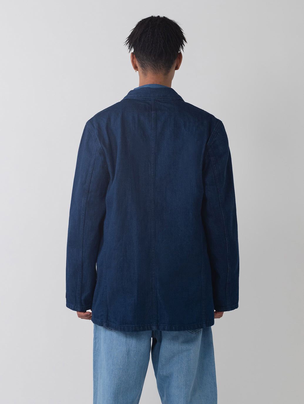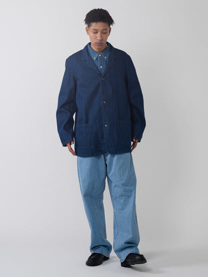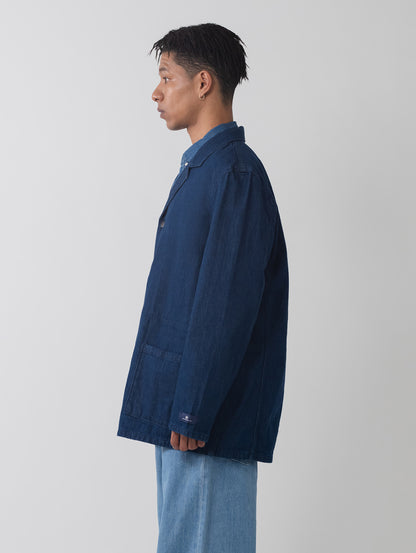 作業着としての起源をもちながらも現代ファッションシーンでも注目されてきているチョアブレザー。光沢間のあるデニム地を使用したボディはクラシックなフィット、ボタンアップ仕様、2つのポケットを配したデザインです。シンプルでありながら上品で洗練された印象を持つ一着です。