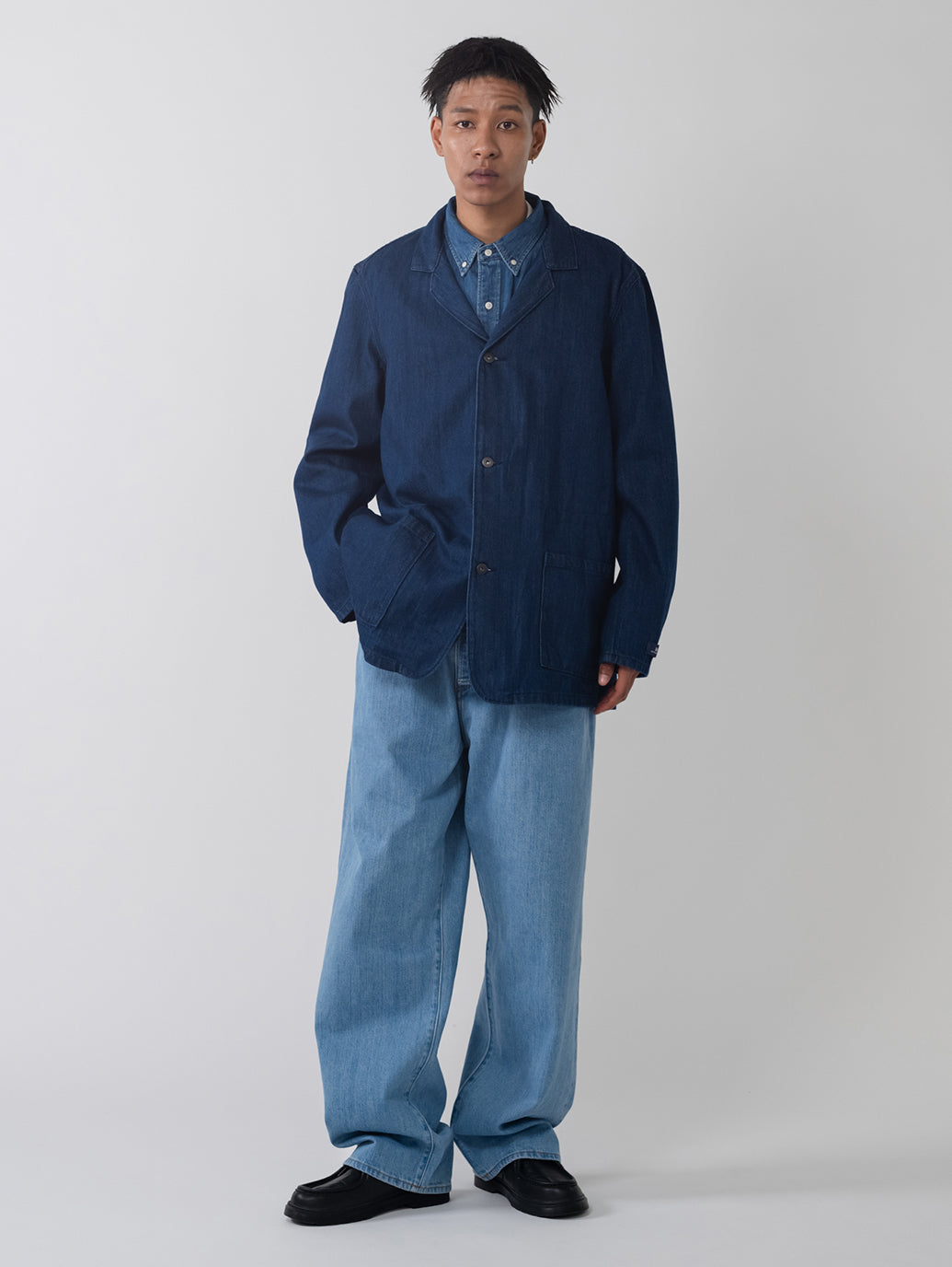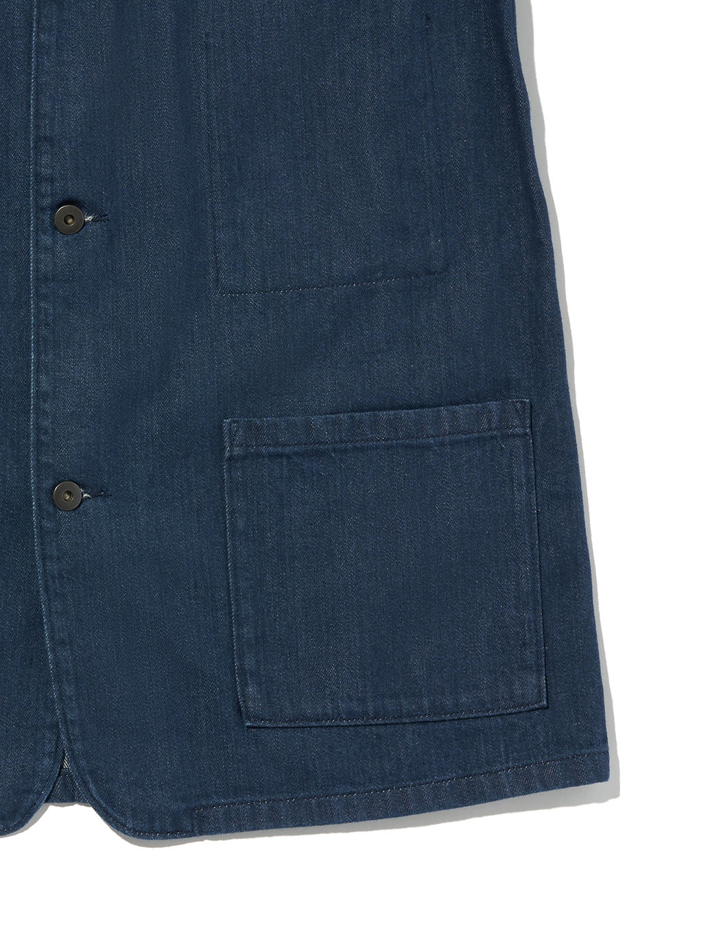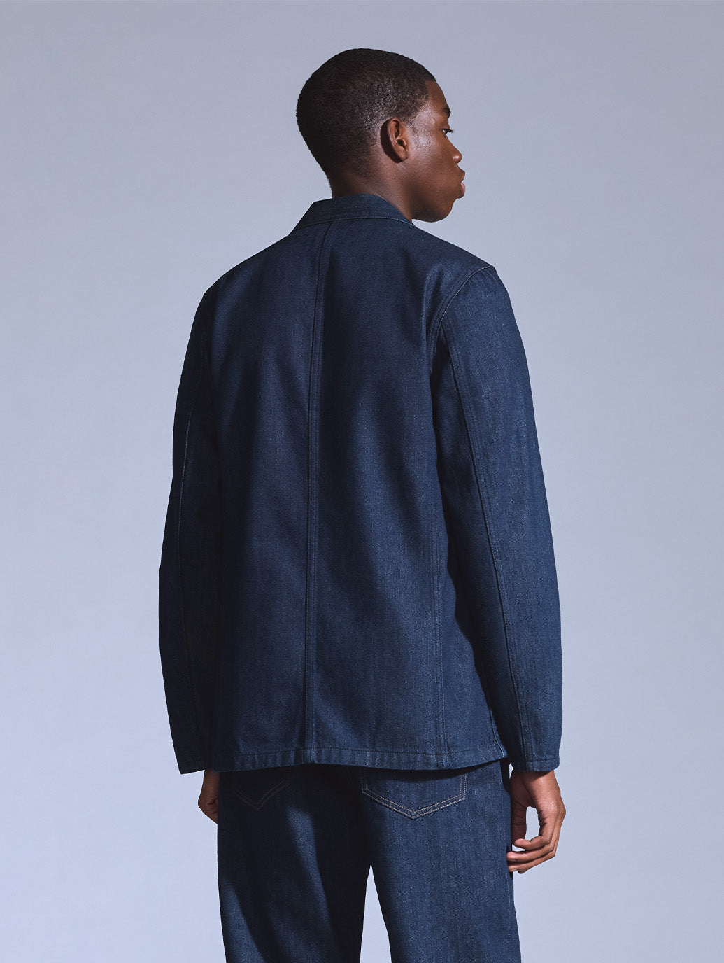 作業着としての起源をもちながらも現代ファッションシーンでも注目されてきているチョアブレザー。光沢間のあるデニム地を使用したボディはクラシックなフィット、ボタンアップ仕様、2つのポケットを配したデザインです。シンプルでありながら上品で洗練された印象を持つ一着です。