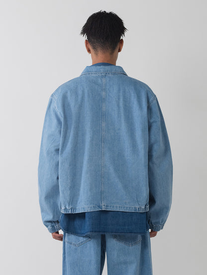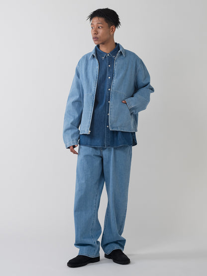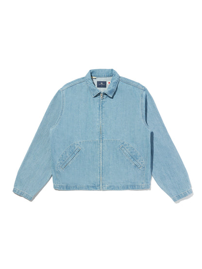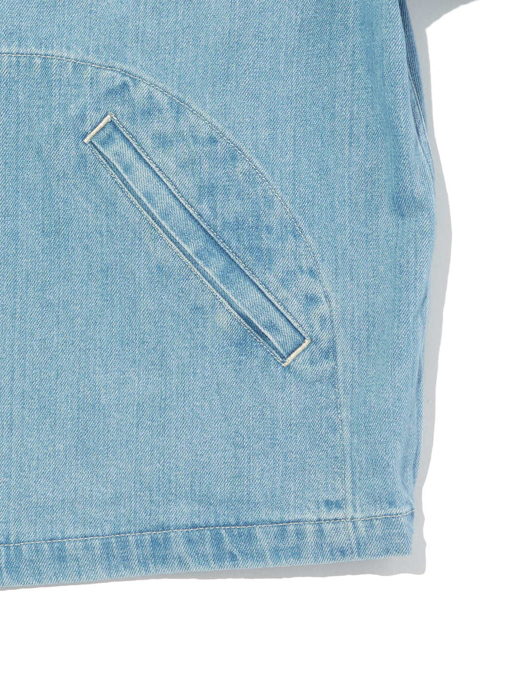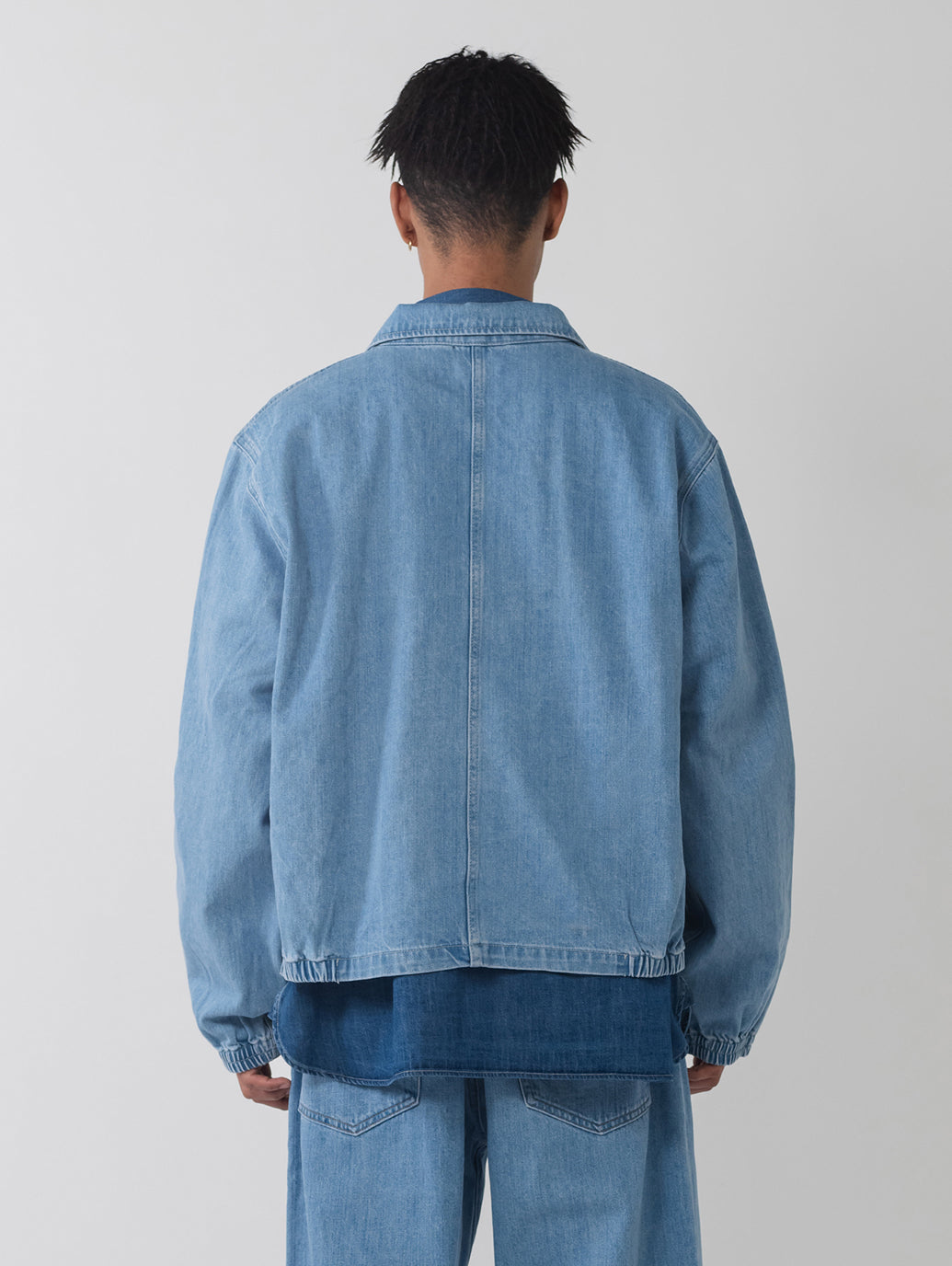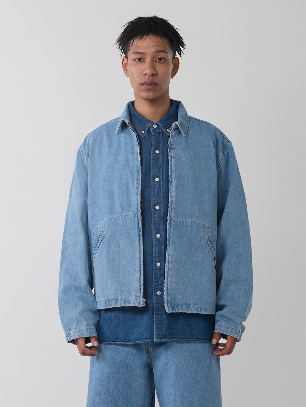 ボックスシルエットでわずかにクロップド丈で絶妙なバランスのスカウトジャケット。ムラの無い淡いライトカラーのボディにサイドポケットを配したシンプルなデザインです。裾、袖部分にも金具を使用せずシンプルかる洗練さを追求した一着です。