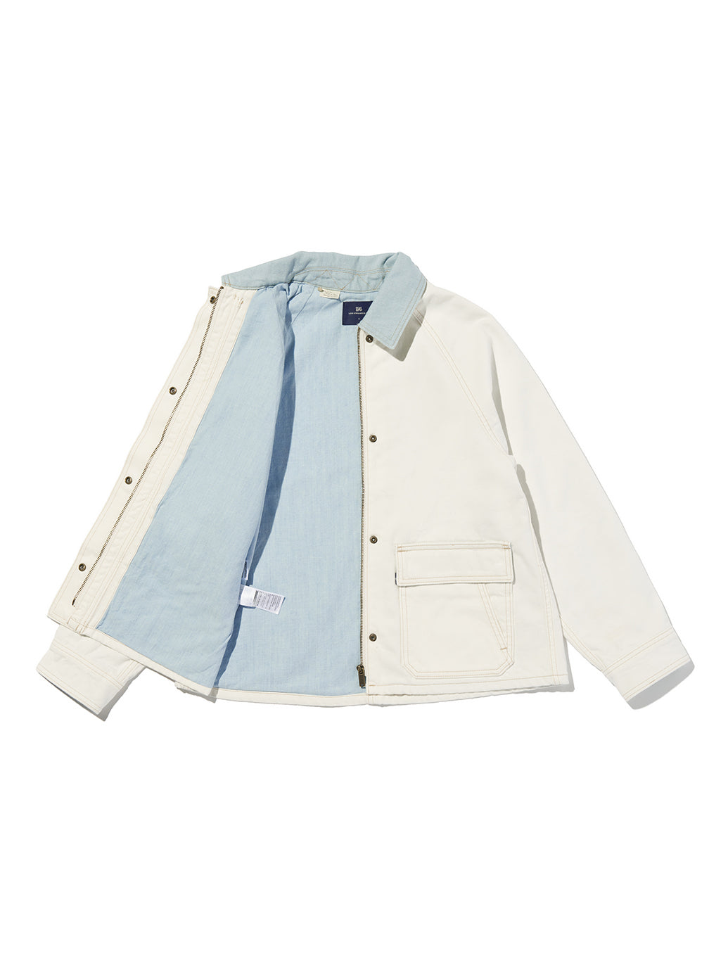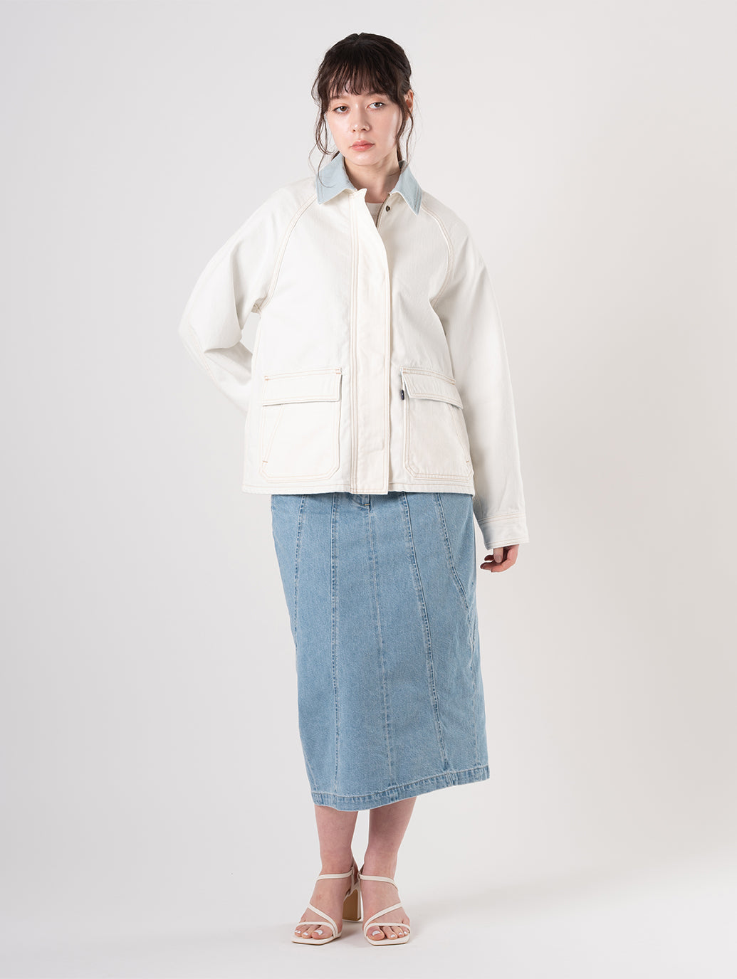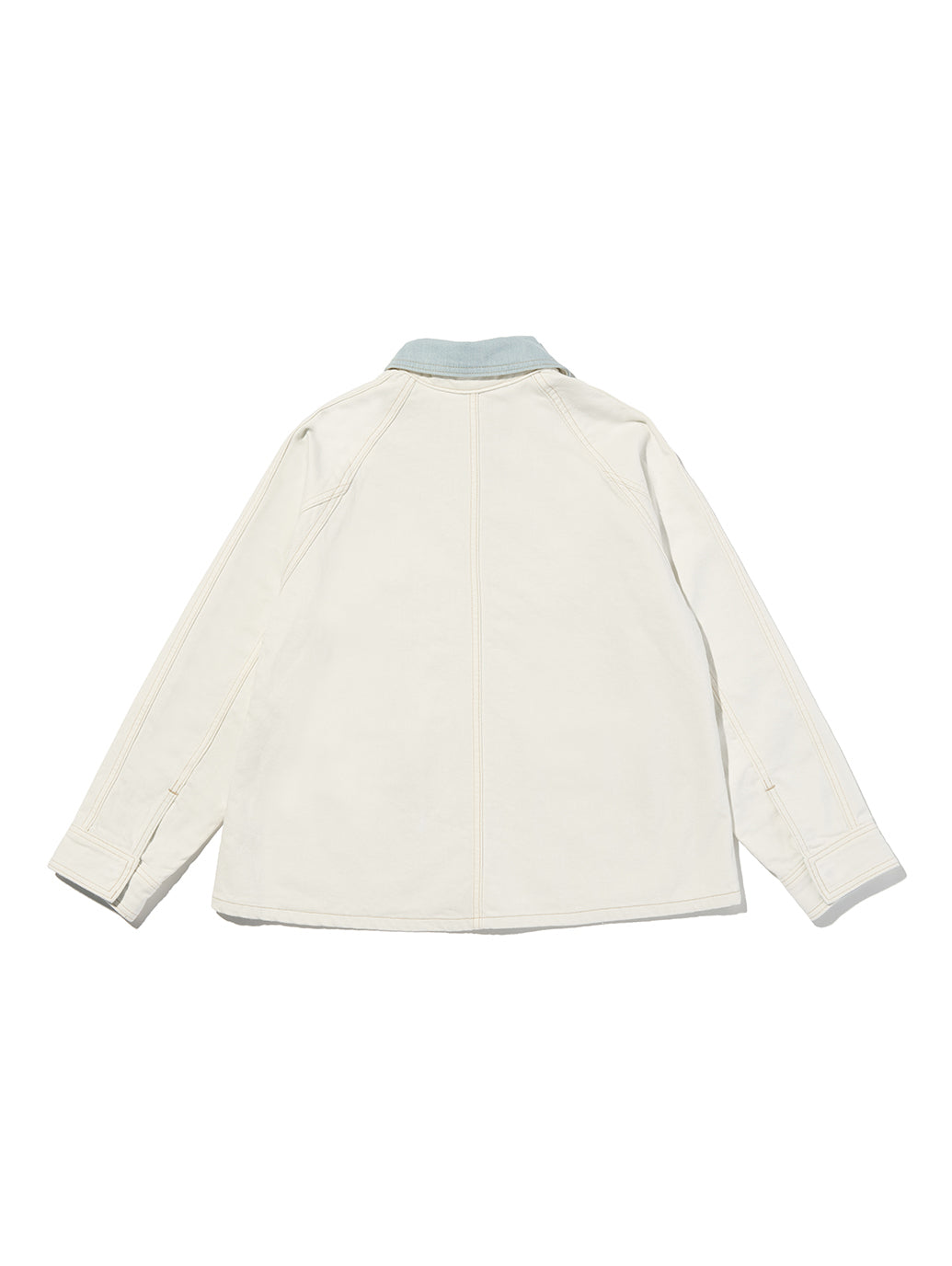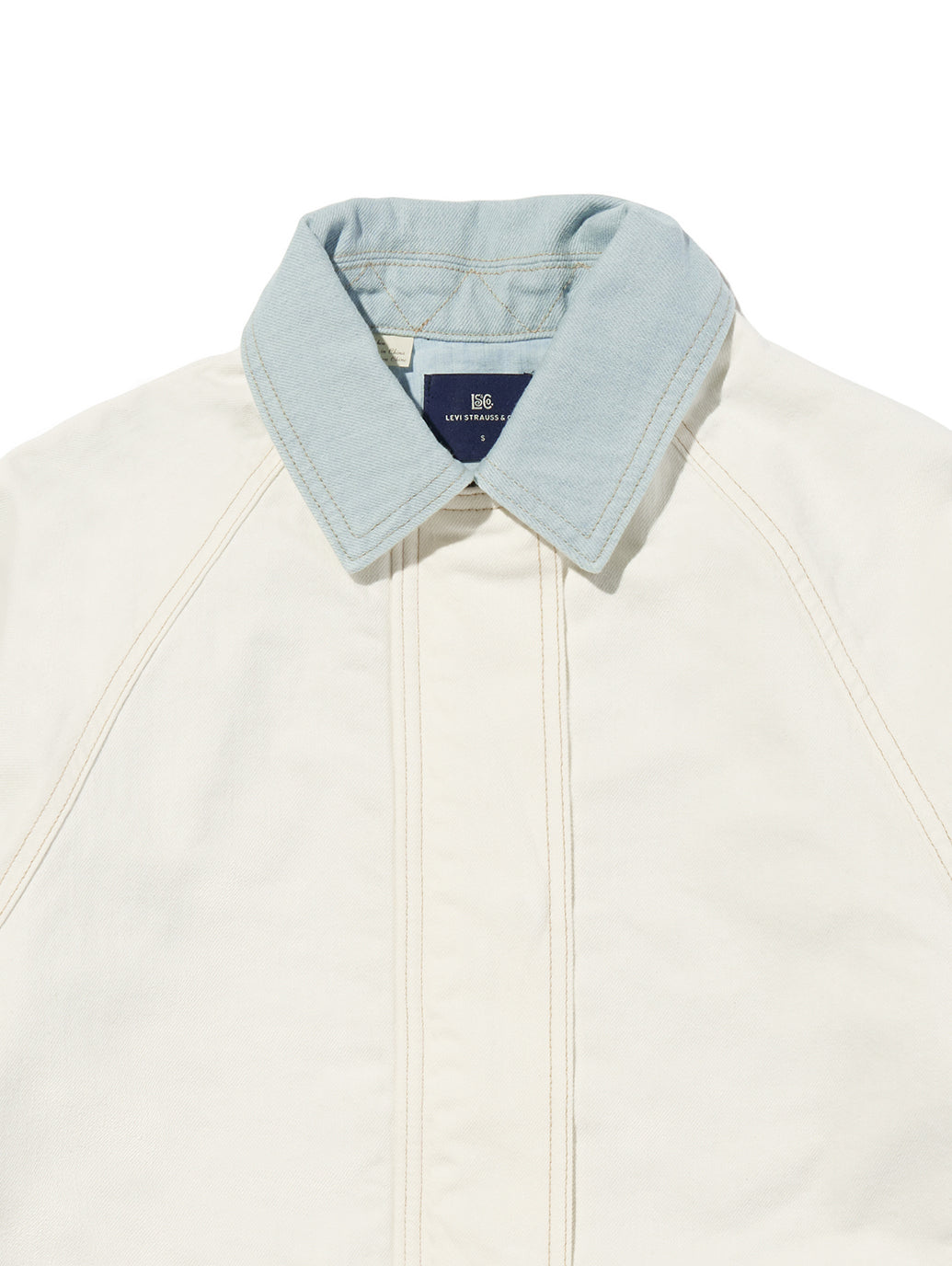 リラックスフィットにカットされ、隠しジッパーとスナップボタン、ソフトなシャンブレーの裏地、パッチポケットなどクラシックなワークウェアのディテールが特徴です。