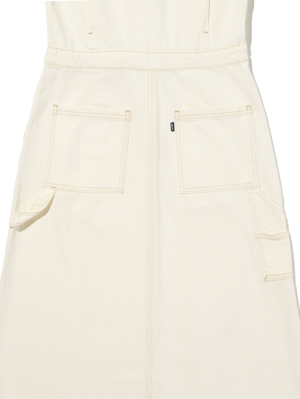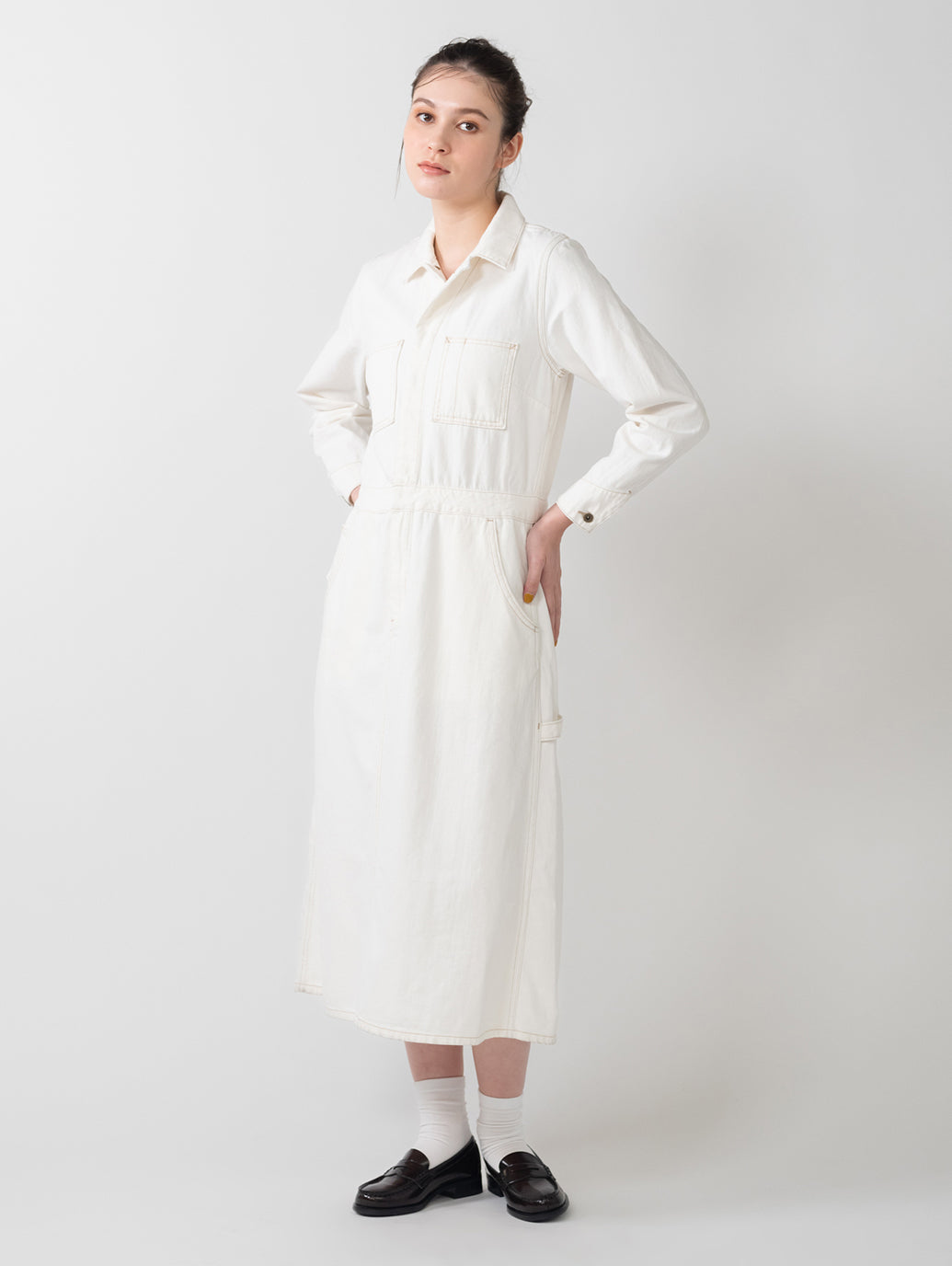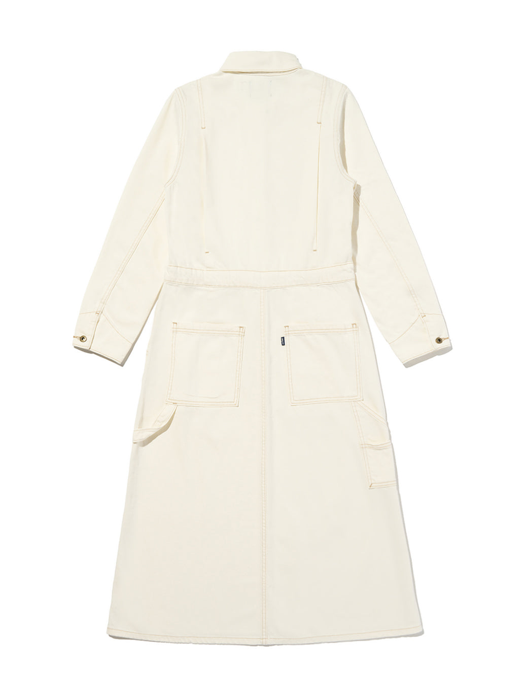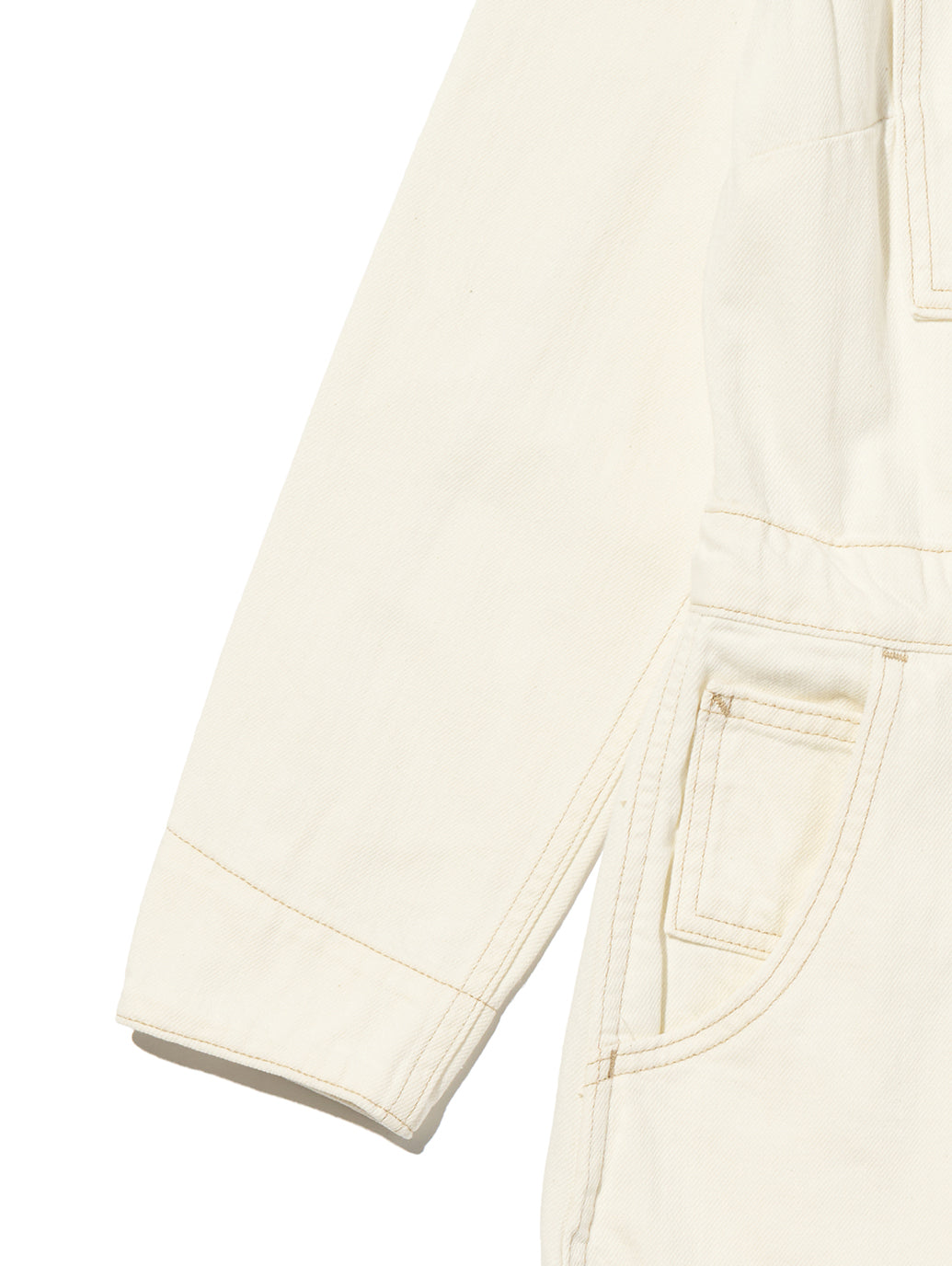 トレンド感の強いオールインワンがこのコレクションでもデザインされました。標準的なリラックスしたフィット感でカットされており、ドローストリングウエスト、マチ付きバック、ユーティリティポケットのようなワークウェアタッチが特徴です。