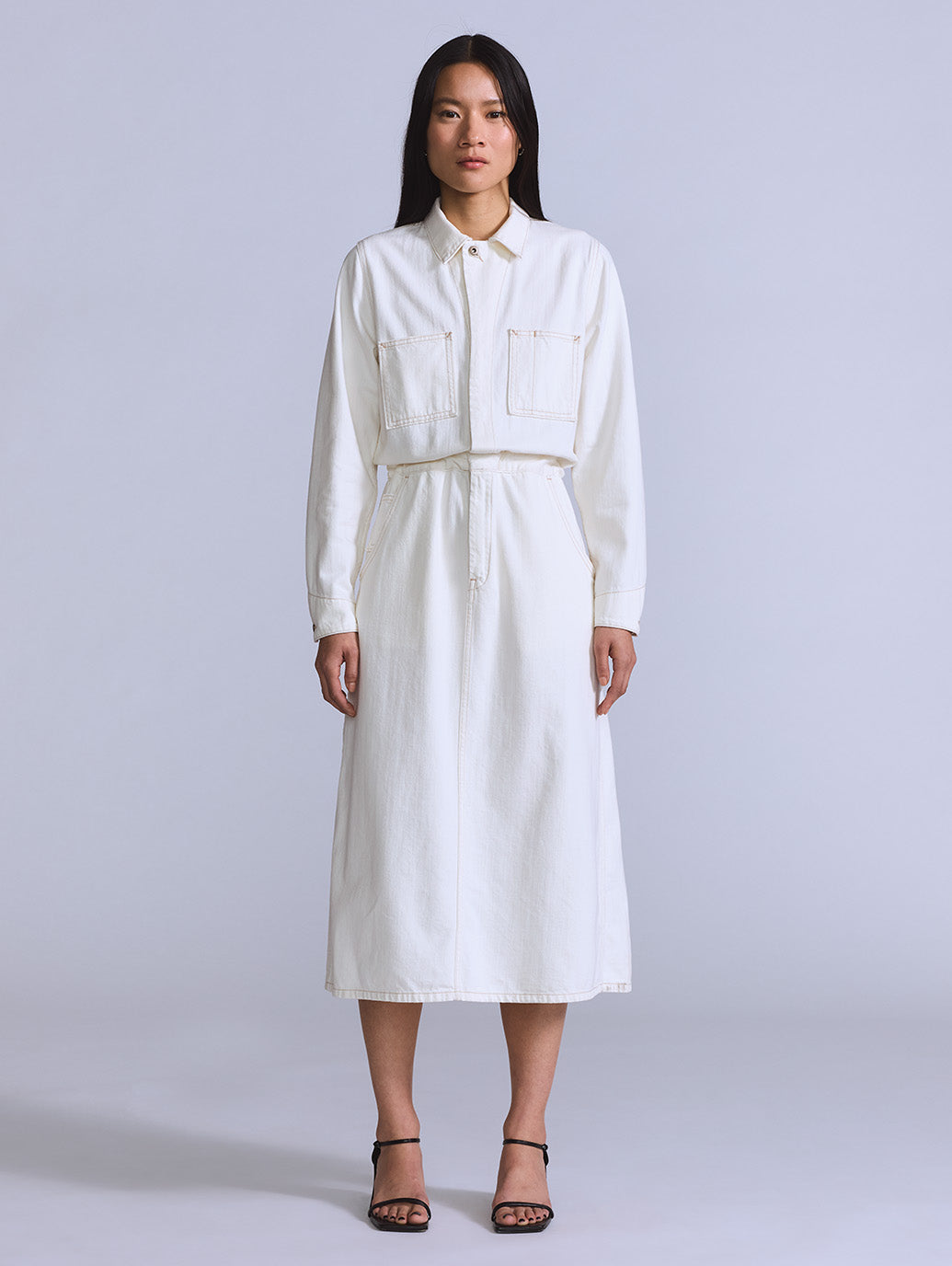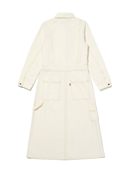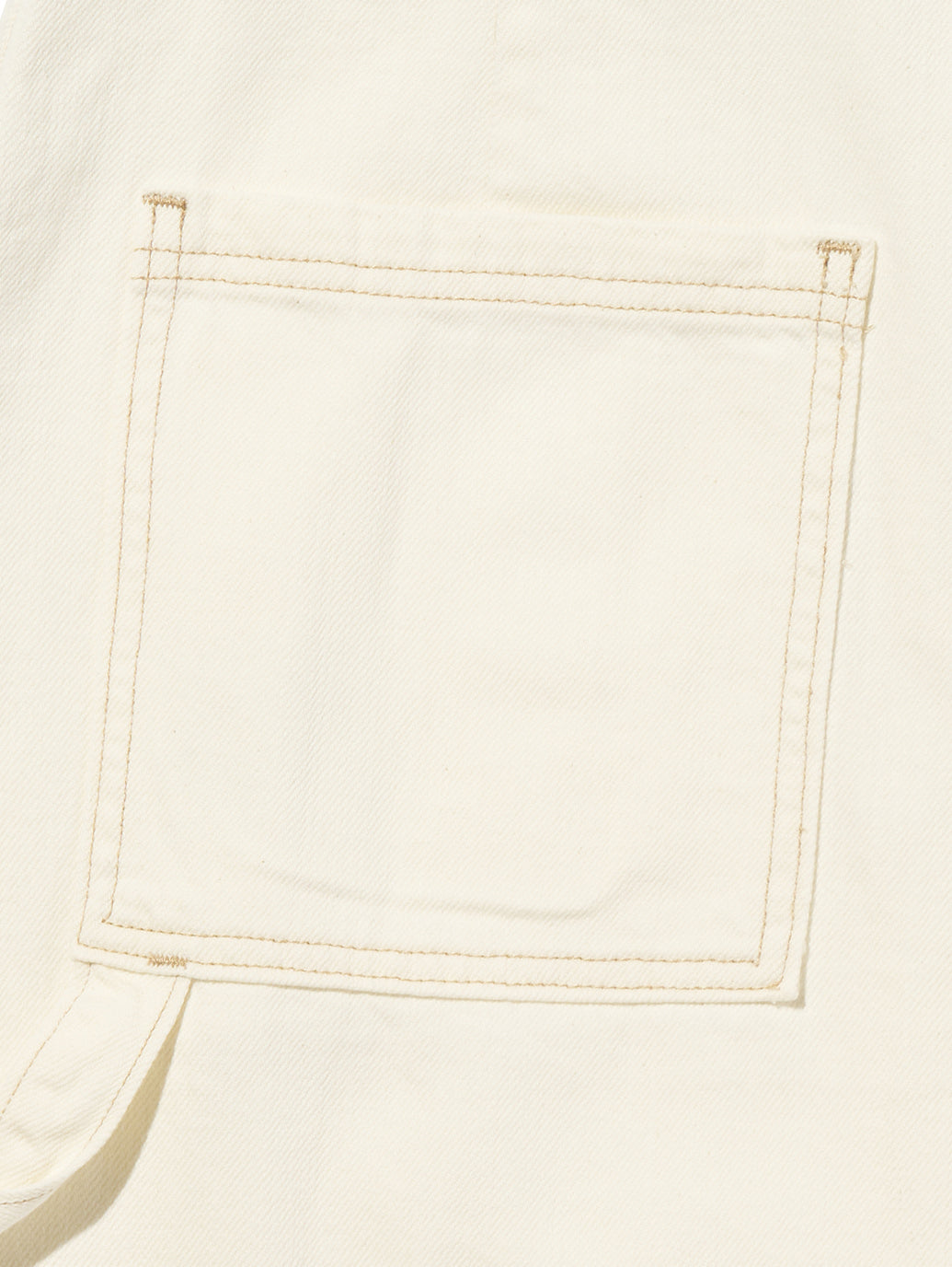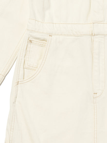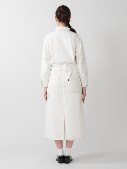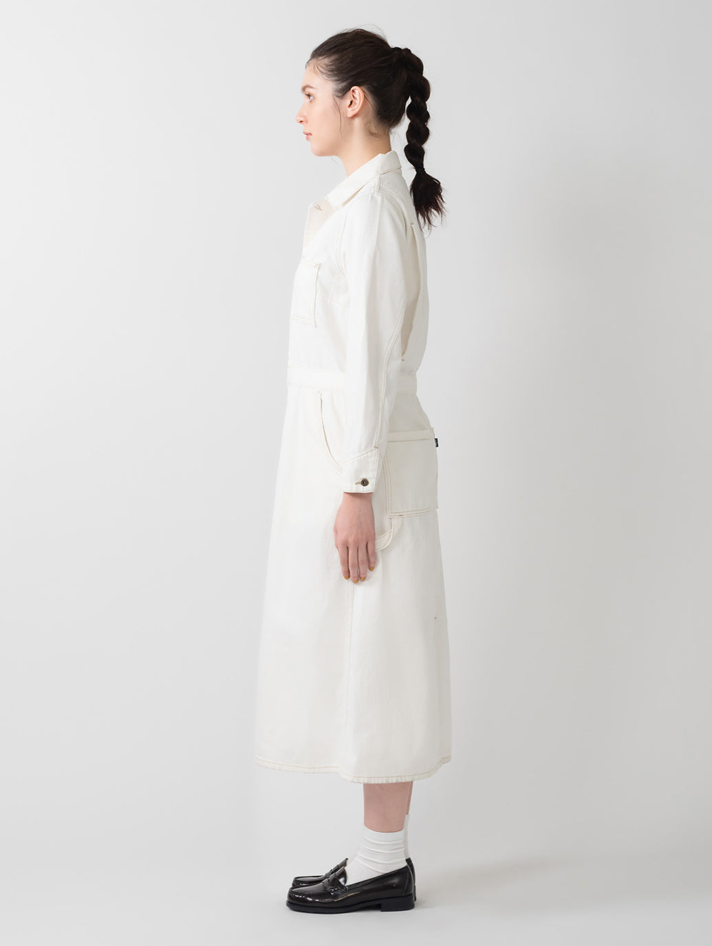 トレンド感の強いオールインワンがこのコレクションでもデザインされました。標準的なリラックスしたフィット感でカットされており、ドローストリングウエスト、マチ付きバック、ユーティリティポケットのようなワークウェアタッチが特徴です。
