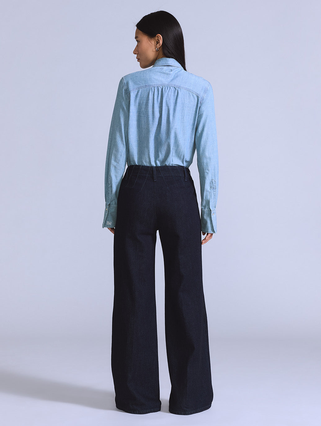 タイムレスなチノをさらに進化させた一着。全体的にストレートフィットにカットされ、ミッドライズウエストを定義するダーツ付きウエストバンド、洗練されたタッチを加えるフレアレッグが特徴です。