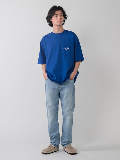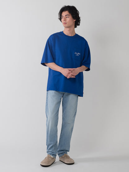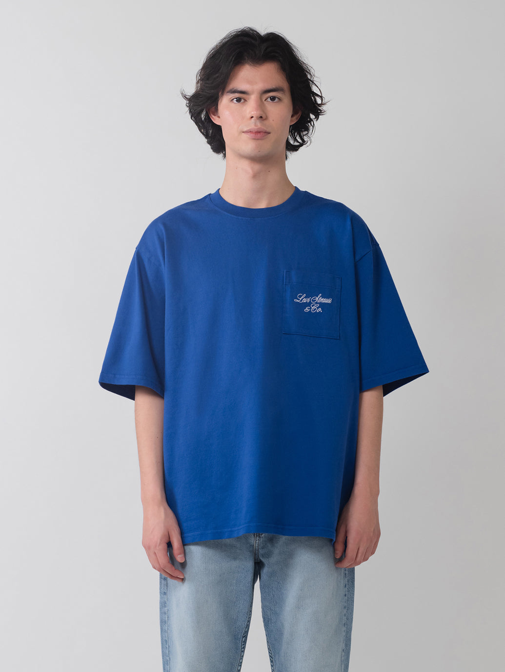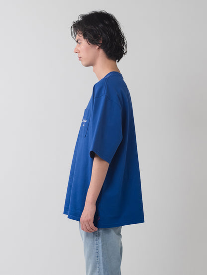 夏の定番トップスの一つであるポケットTシャツ。ルーズフィットでブルーカラー。胸元のポケットに刺繍を施したデザイン。幅広いスタイリングで重宝する一着です。