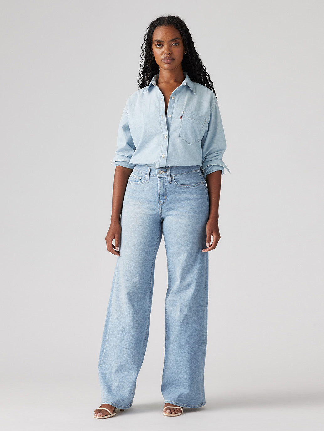 Levi'sのウィメンズ定番の300シリーズ。318 シェーピング ワイドレッグジーンズは、ウエスト周りの引き締める効果のあるフロントパネル設計になっており、ワイドレグとのメリハリがしっかり出やすく美脚効果のあるシルエットが魅力です。合わせやすのあるミディアムインディゴカラーで春先に活躍間違いなしの一本です。