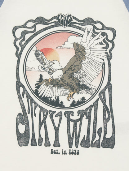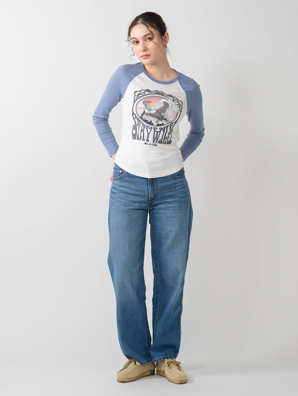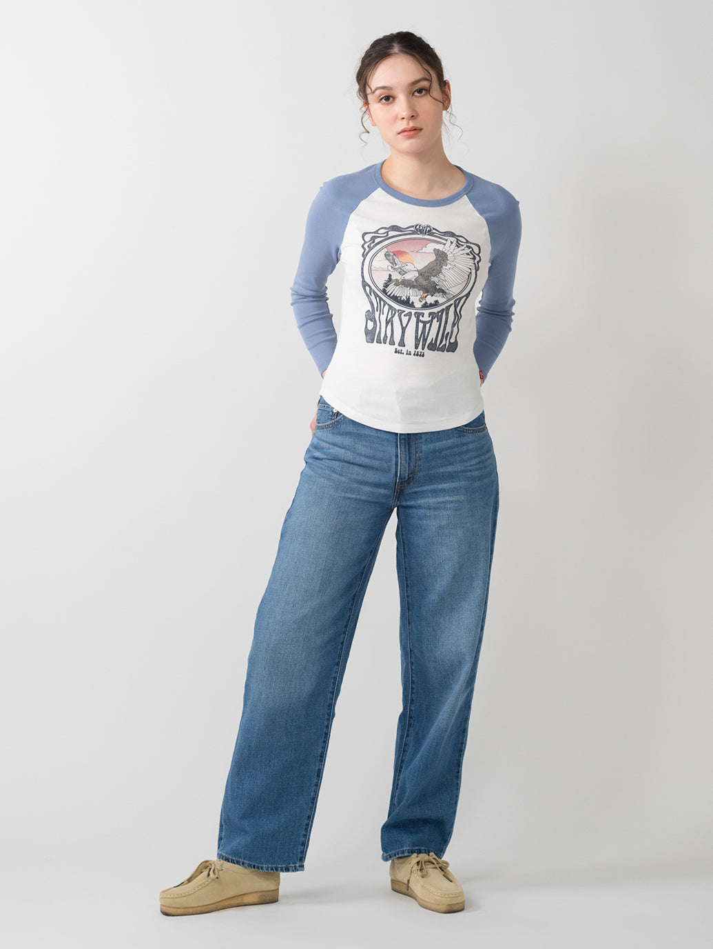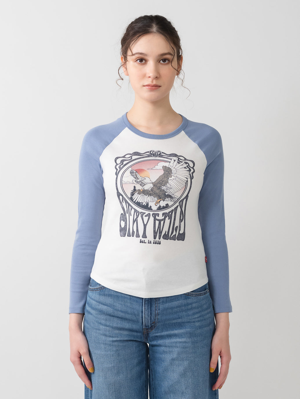 クラシックなベースボールTシャツを再解釈。クラシックなクルーネックとスタンダードフィットとリンガーボディにグラフィックデザインを落とし込んだデザインです。春先にお気に入りのジーンズとシンプルに合わせて頂きたい一着です。