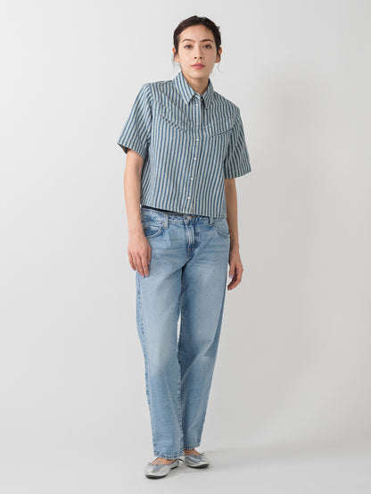 アメリカのクラシックとも言えるくつろいだ雰囲気を、Rinoaキャンプシャツに注ぎ込みました。この定番アイテムは、フロントボタンアップにウエスタン風の縁取りをあしらった着やすいスタンダードフィットスタイルです。