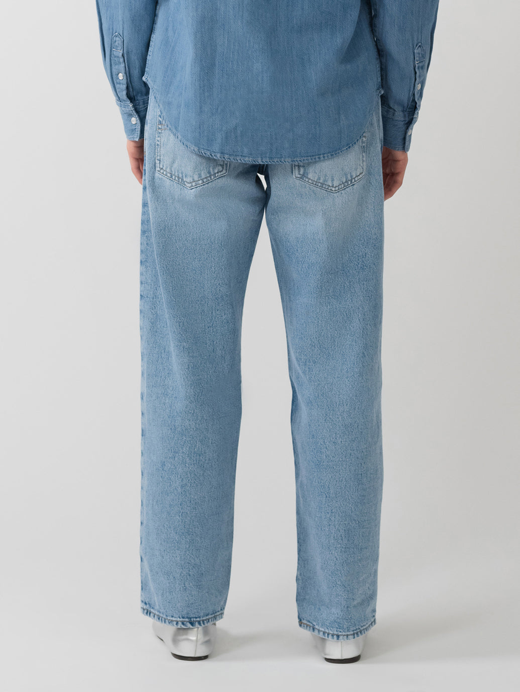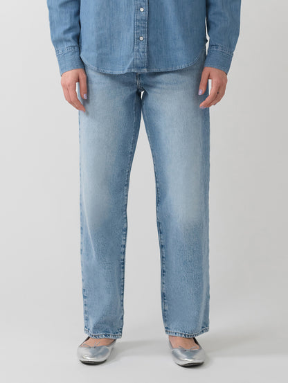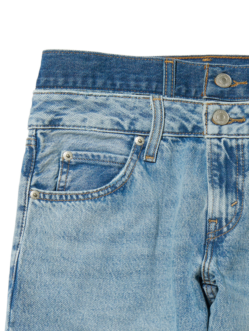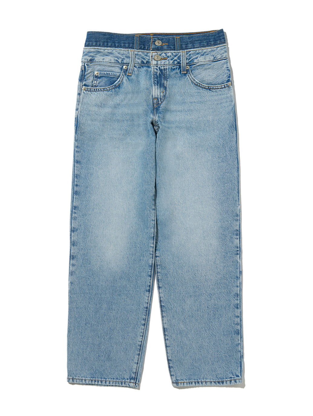 トレンドの90年代のビックジーンズが登場しました。ミッドライズと同系色のダブルウエストのスタイルで、ウエストのスッキリ見せてくれるデザインです。どんなアイテムとも合わせやすいカラーです。スーパーワイドレッグのリラックスフィットが際立ちどんな靴もと相性抜群の一本です。