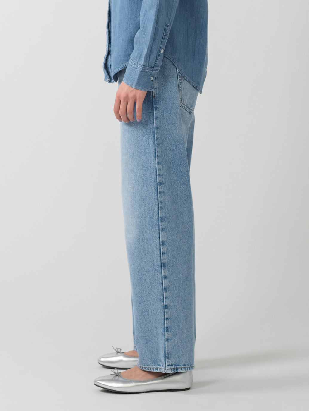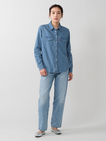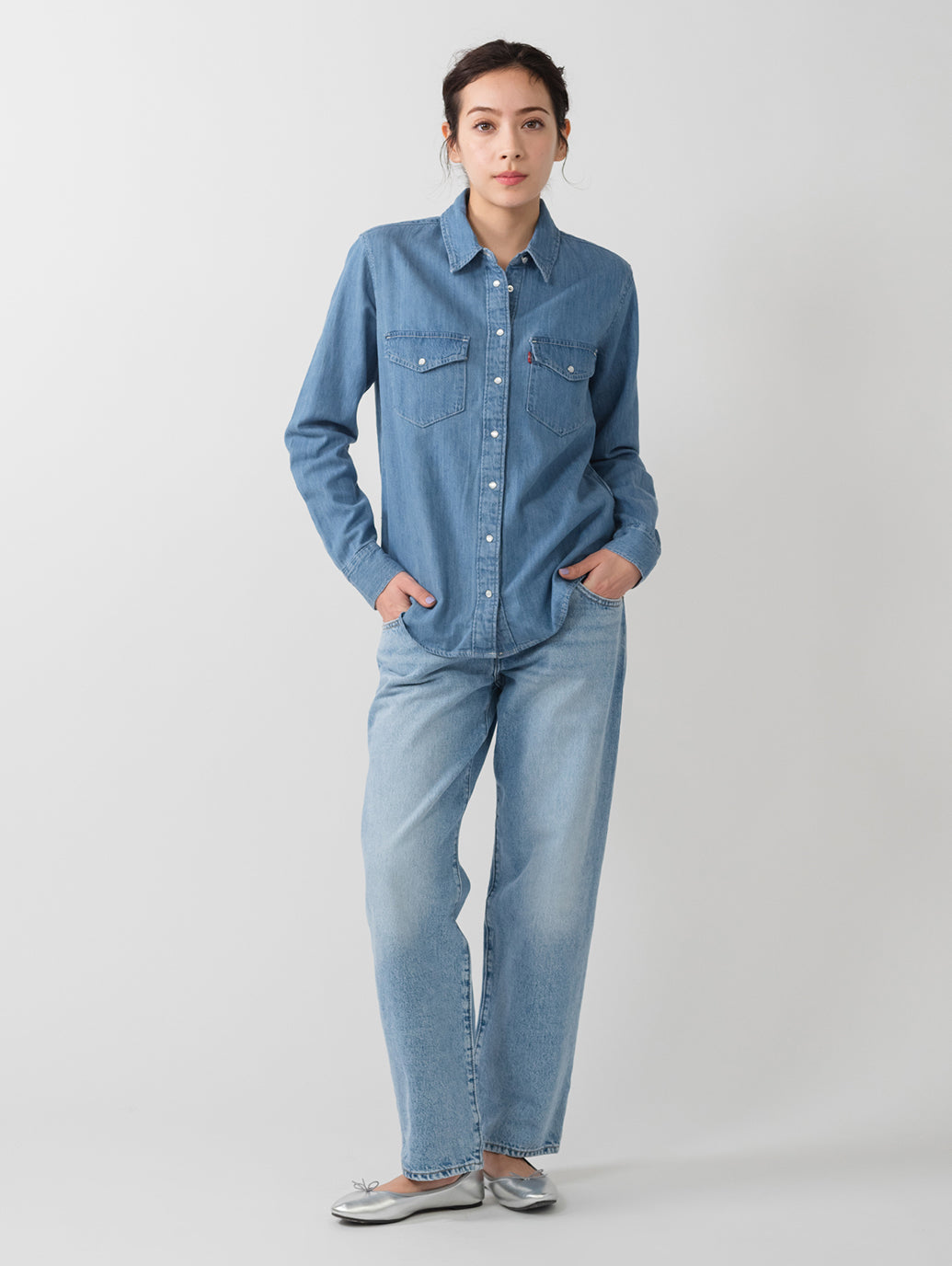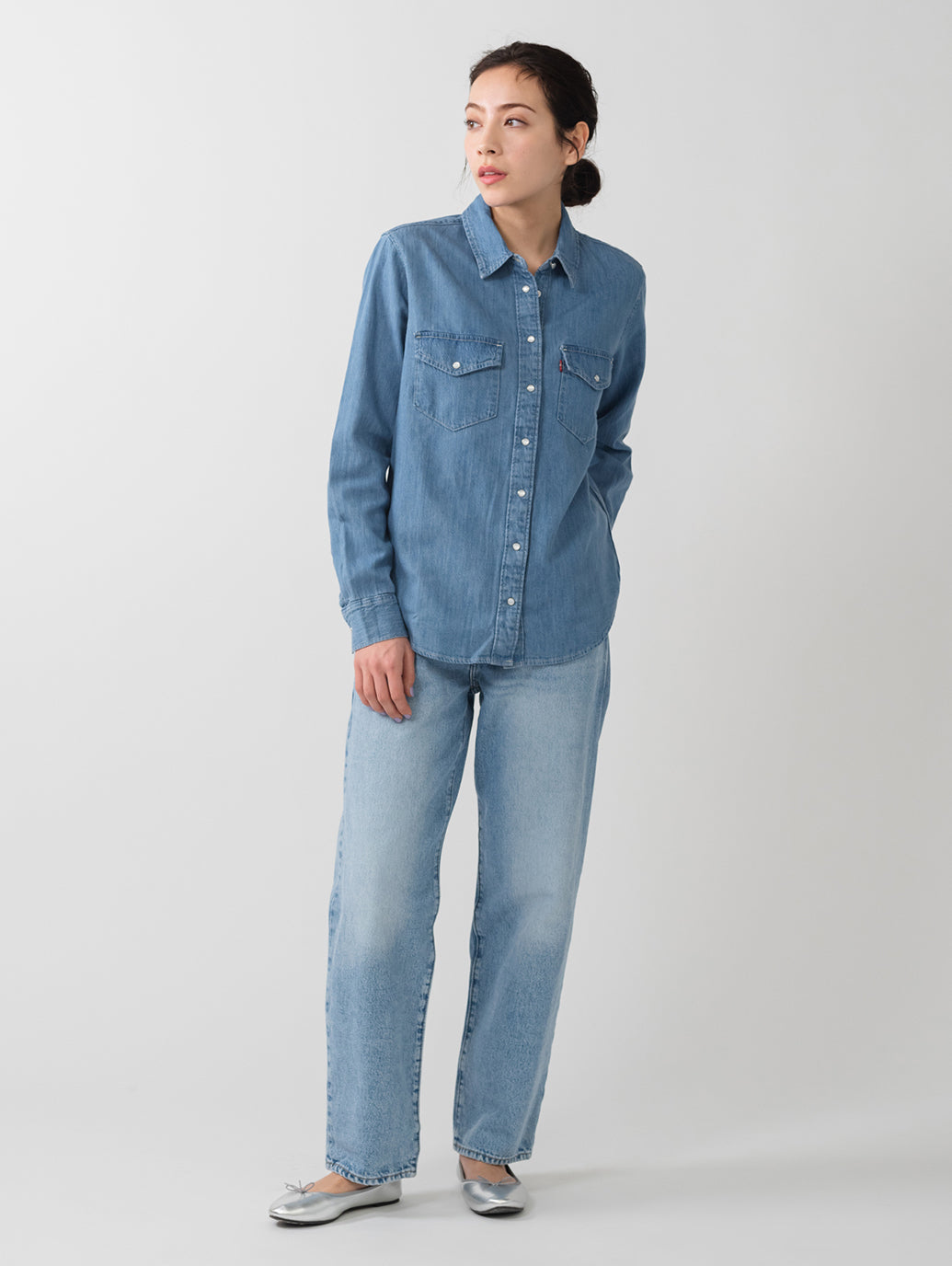 トレンドの90年代のビックジーンズが登場しました。ミッドライズと同系色のダブルウエストのスタイルで、ウエストのスッキリ見せてくれるデザインです。どんなアイテムとも合わせやすいカラーです。スーパーワイドレッグのリラックスフィットが際立ちどんな靴もと相性抜群の一本です。
