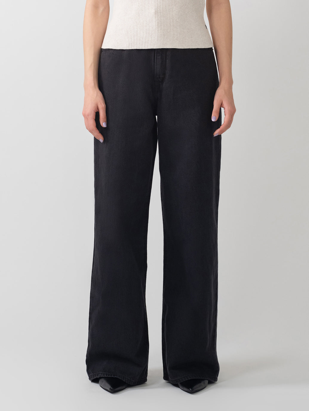 トレンドのバギースタイルで、自分のウエストにピッタリなサイズに変更できる優れたジーンズがデザインされました。スタイルを引き立てるハイライズのスタイルで、リラックスフィットのスタイルの背中にアジャスターを付けて、ぴったりにあわせられるようにしました。是非、アジャスターを利用してコーディネートをお楽しみください。