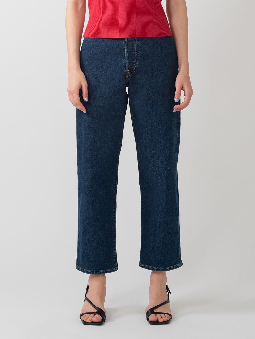 Levi'sのハイライズの中で最もハイライズなジーンズにウエスタン風のリベットデザインを施した新しいデザインのジーンズが登場しました。驚異的な12インチライズのリベット リブケージ ストレート アンクル ジーンズは、ウエストを強調し、脚を長く見せてくれるジーンズです。スタイルを強調して、見かけだけでなく気分も上げてくれるフィットです。