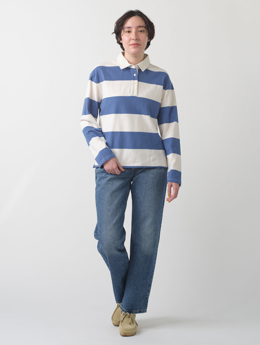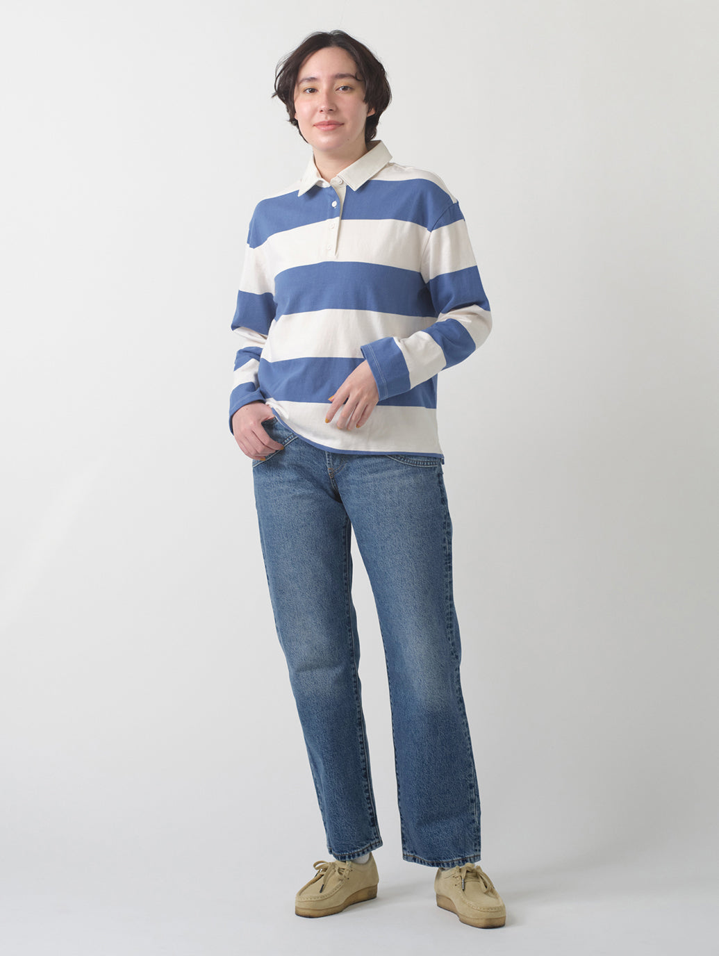 クラシックなミッドライズ、アンクル丈のカット、ゆったりとしたストレートフィットで、脚に適度なゆとりを持たせました。ステッチが個性的な1本です。カラーブロックされた独特なステッチでお腹周りをスッキリさせて足長効果抜群。トップスをタックインコーディネートをするのがお勧めです。カラー違いで欲しくなる1本です。