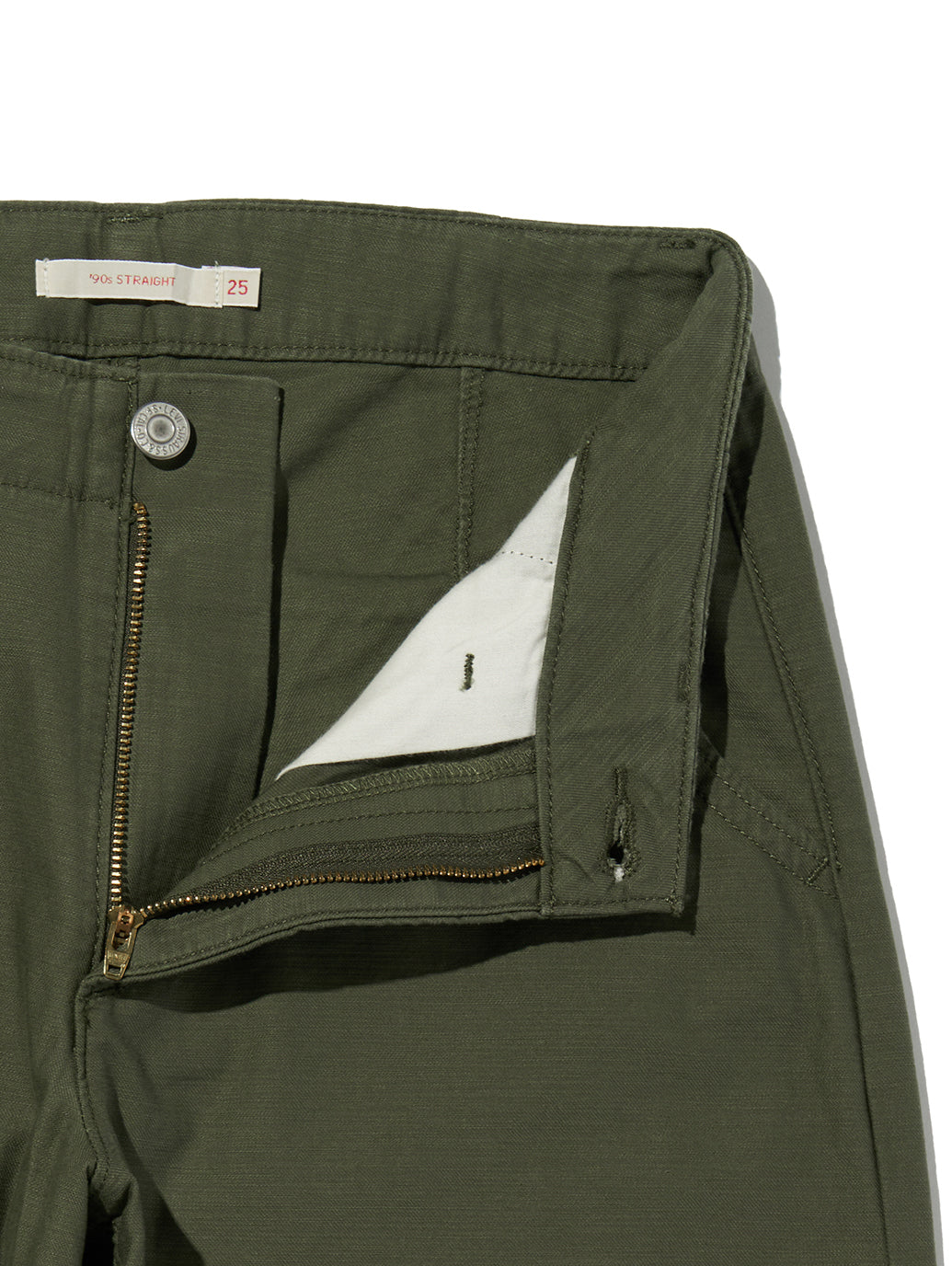 クラシックなストレートレッグ、ウエストのくびれを強調するミッドライズ、着やすい、リラックスフィット。オリーブカラーで着回しのしやすさは勿論ですが、90年代を感じさせる適度なゆとりのありシルエットでトレンド感もあり、ジャストめなトップスに合わせてメリハリを出すスタイリングもお勧めの一本です。