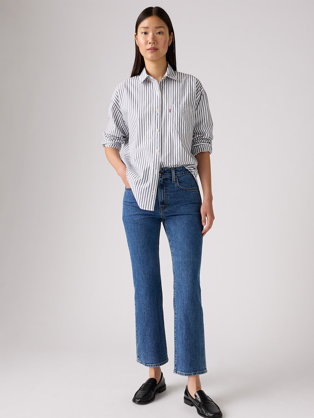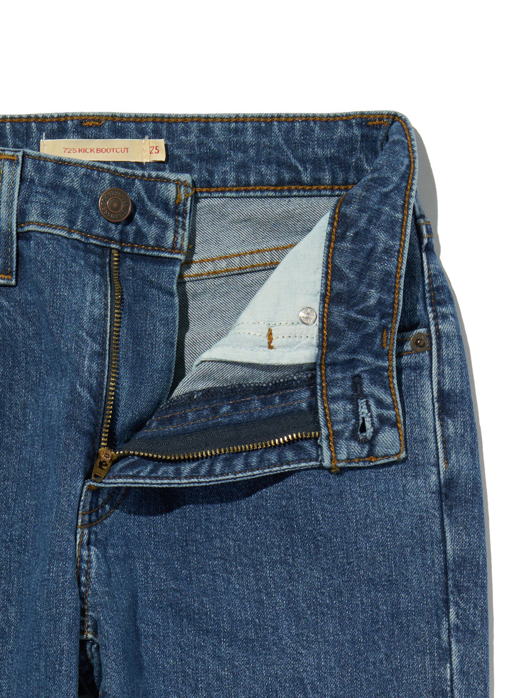 超ハイライズと足首にかけて美しく広がるブーツカットを融合させた、725 キックブーツジーンズ。