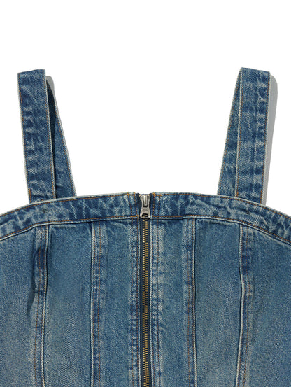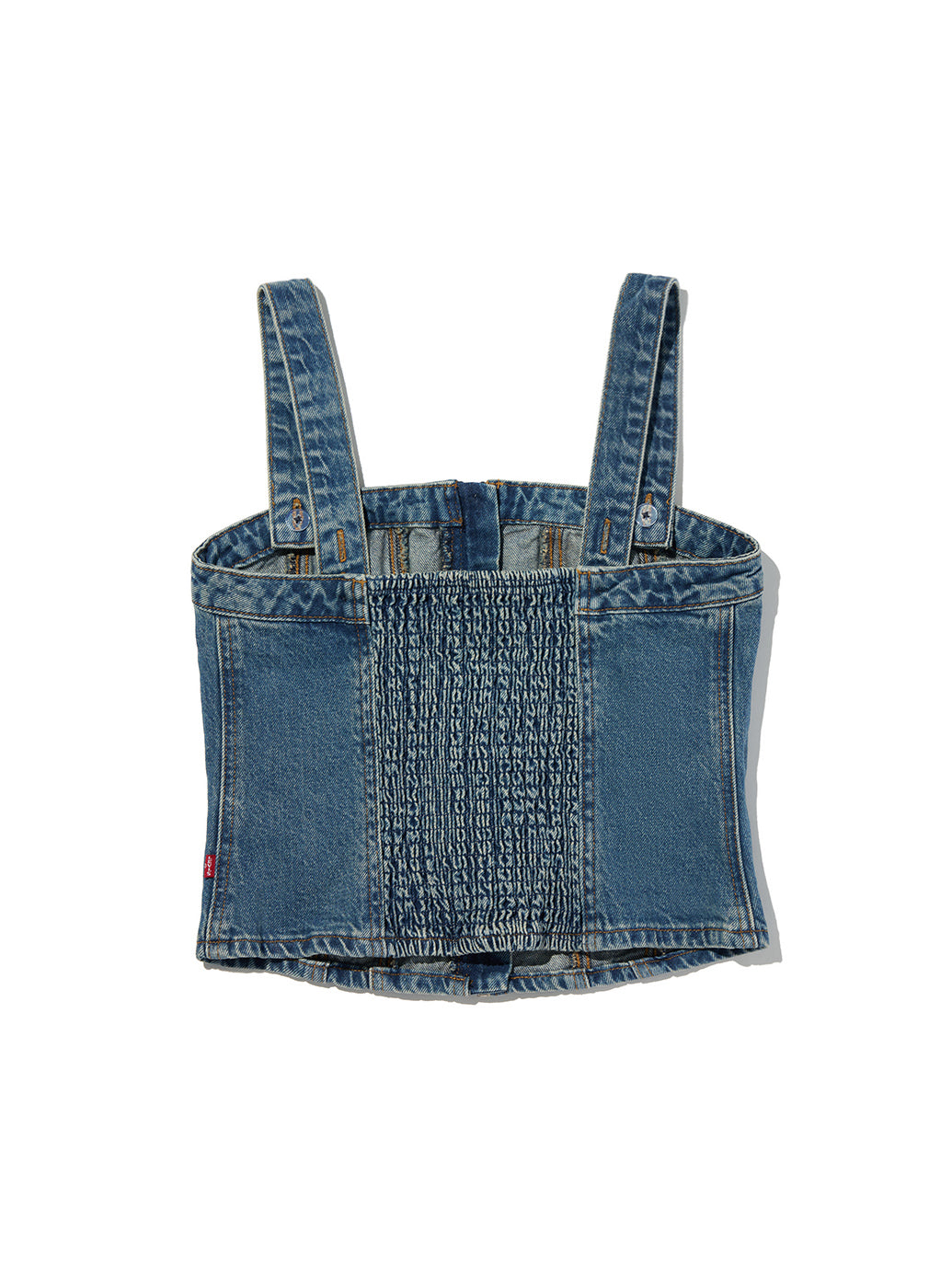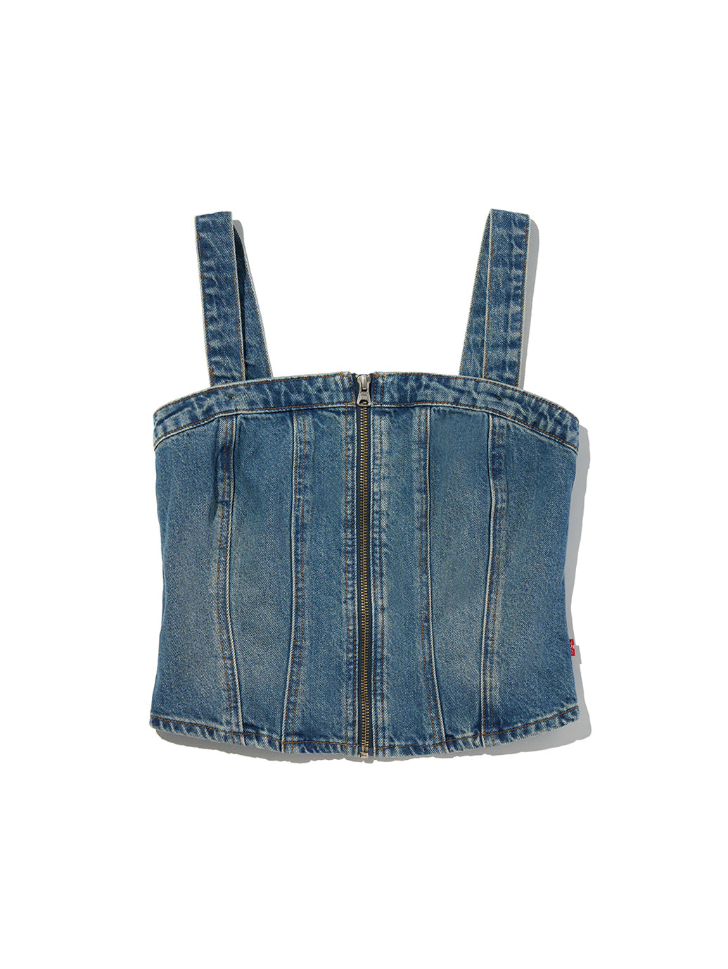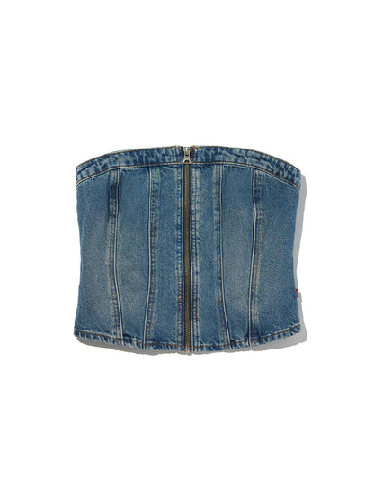 Levi'sらしくデニム生地を使用したスカルプドビスチェ。コルセット風のデザイン、フロントジップアップのスリムフィットが特徴で、春先にはシャツの上に合わせる着こなしもお勧めです。ストラップは取り外し可能でオールシーズン活躍するアイテムです。