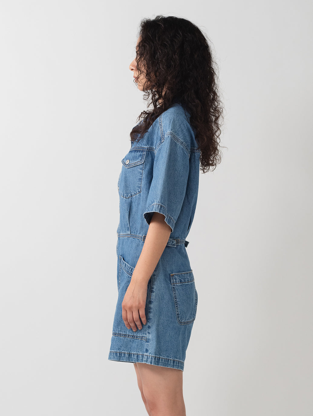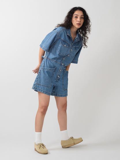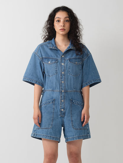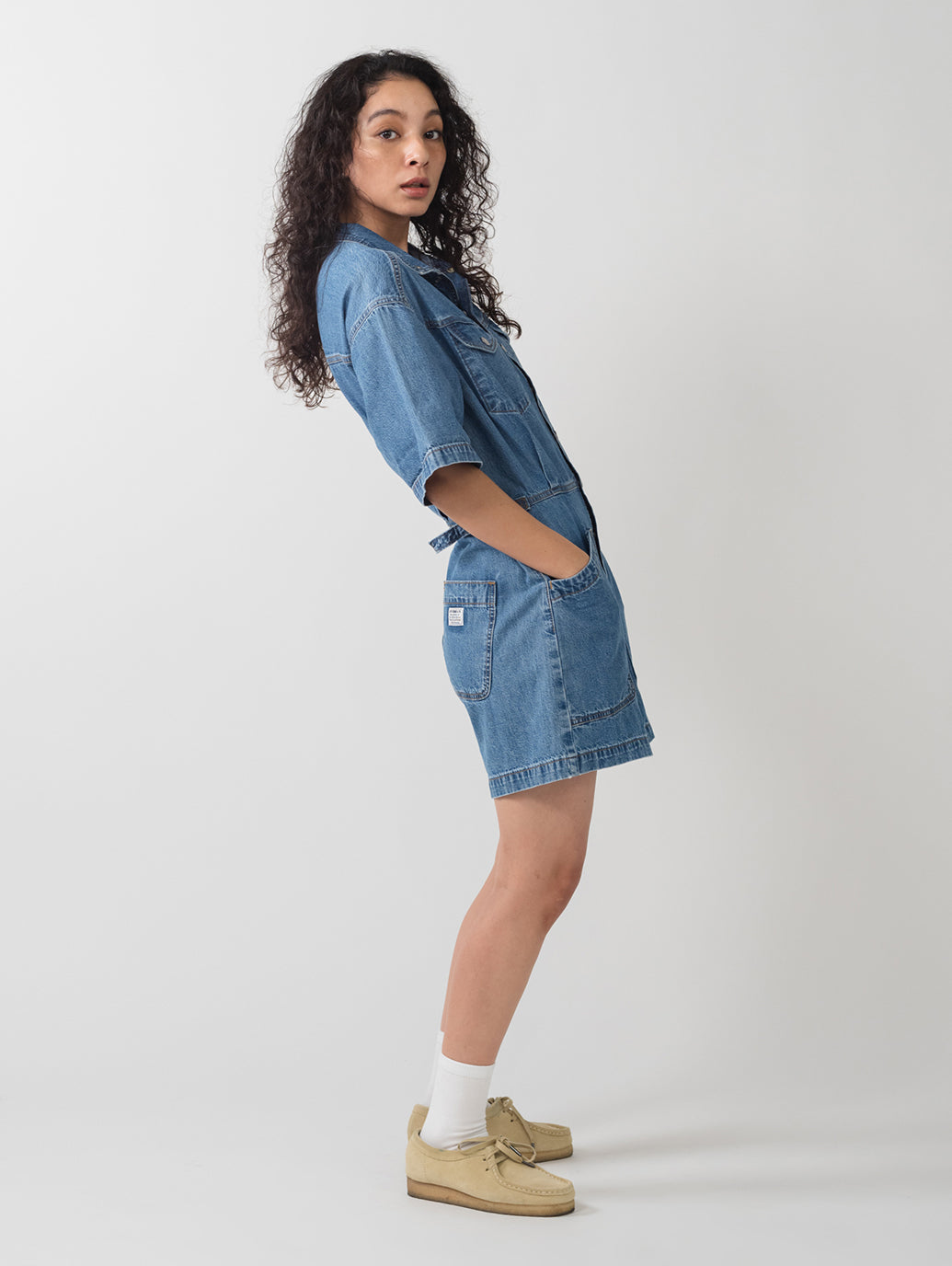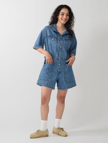 快適かつクールなロンパースが登場。4つのポケットのあるクラシックなフロントボタンアップデザインで、ウエストを絞って調整できます。