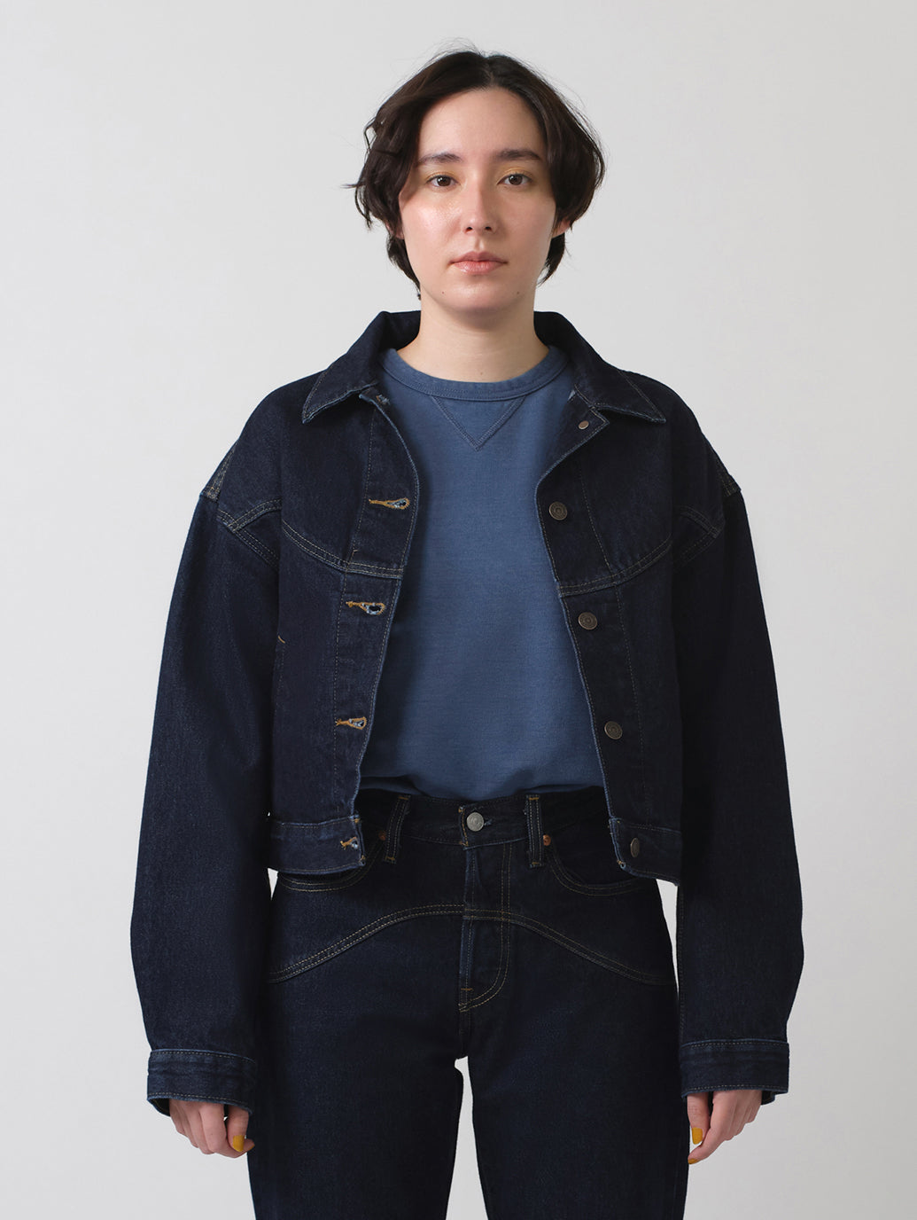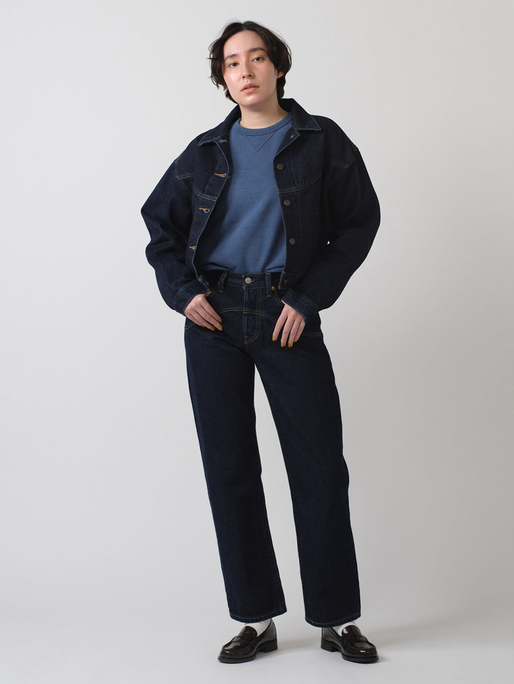 アイコニックな'90s Trucker Jacketをクロップド丈でアップデートだれたトラッカージャケットが登場しました。着やすいウェイト丈でコーディネートしやすい優れものです。さらに、ボディラインに沿ったレトロなカットのシルエットが90年代風の雰囲気を演出します。