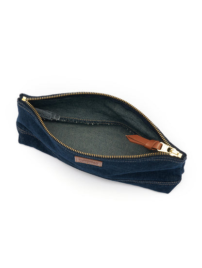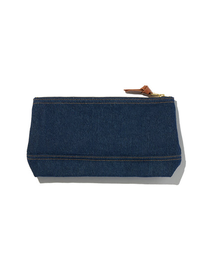 必需品をすべて収納できるようにデザインされたデニムポーチ。クラシックなデニム生地を使用し、レザーパッチやレザープラーなどの高級感のあるディティールにも拘ったアイテムです。
