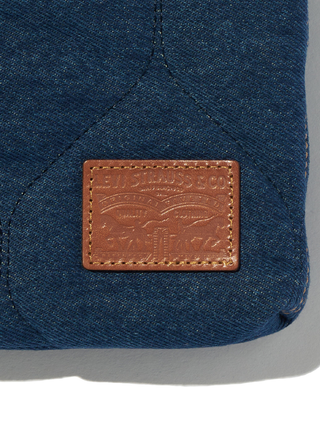 15 インチのラップトップにフィットするように設計されたデニムラップトップスリーブ。クラシックなデニムを使用し、レザー パッチやレザープラーなどの高級なディテールが特徴のアイテムです。