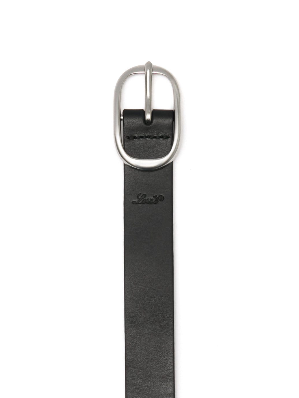 丈夫で長持ちする本革を使ったレザーベルト 。ブラックカラー、耐久性のある構造、丸みのあるバックルのデザインです。スタイリングのアクセントとして活躍するアイテムです。
