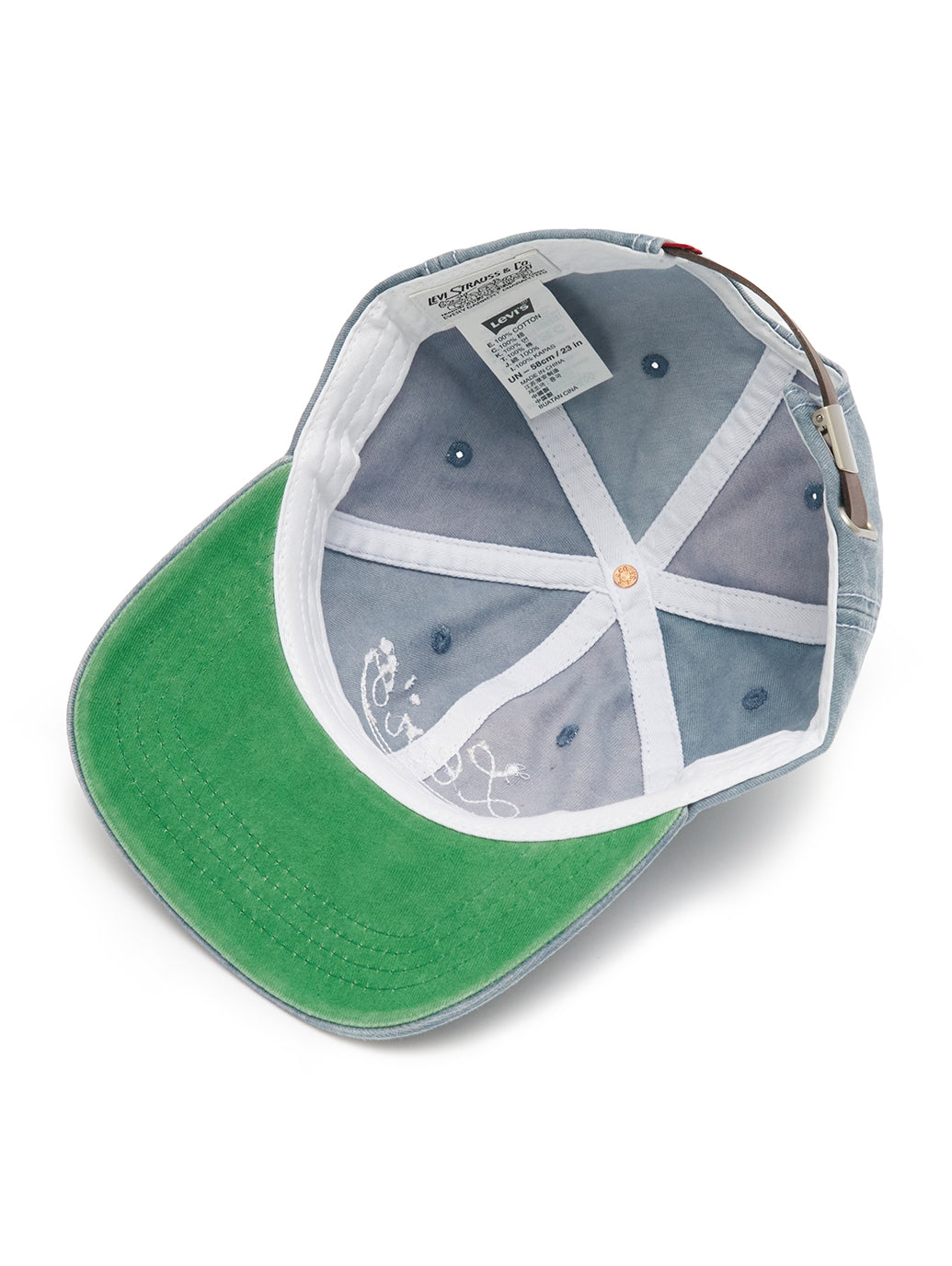 レトロなベースボールキャップからインスピレーションを得たキャップ。ブルーカラー「Levi’s」のワッペンロゴをあしらったデザインです。ブリムの裏地はグリーンになっているのもポイント。スタイリングのアクセントとして活躍するアイテムです。
